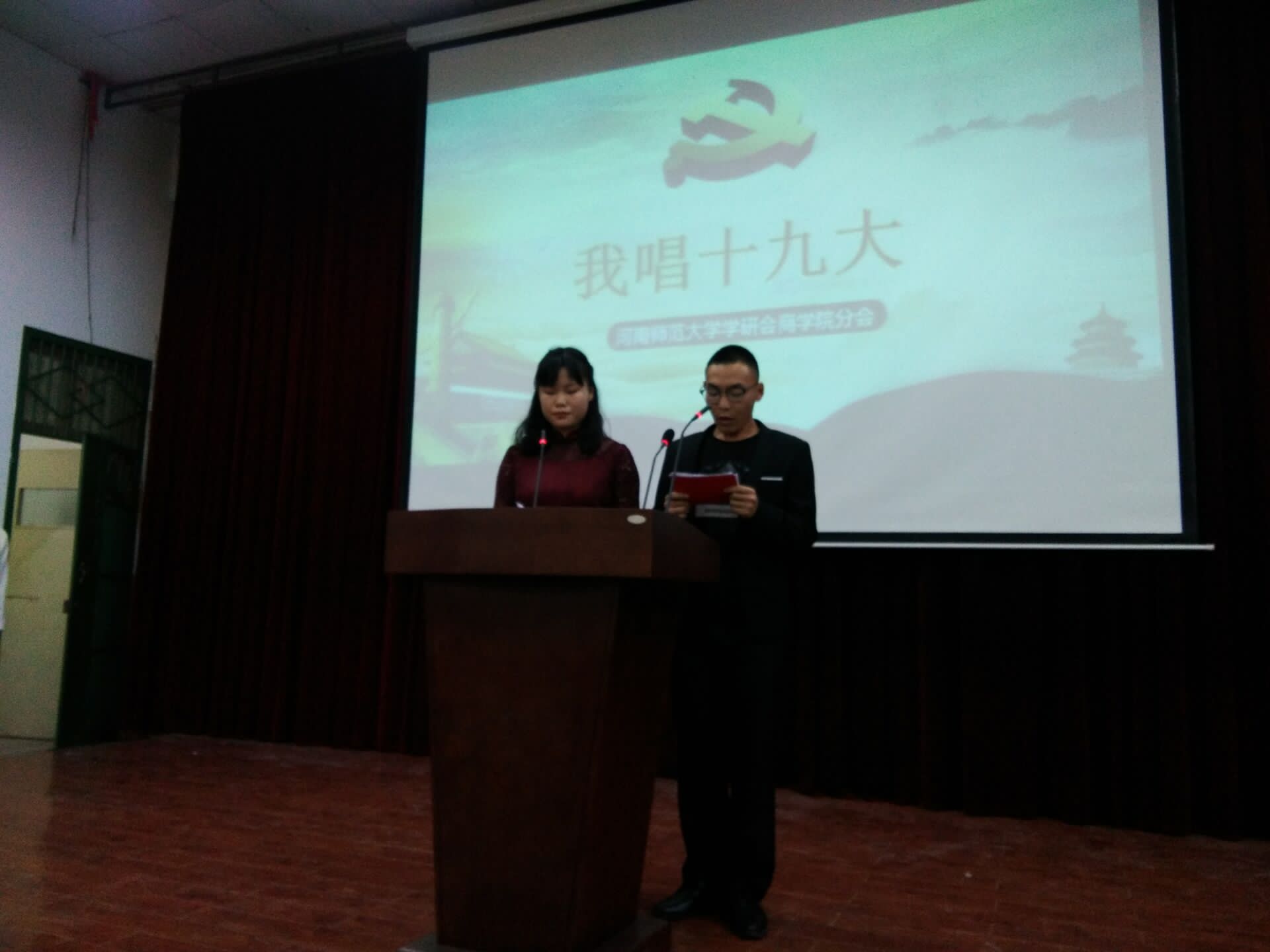 10月25日晚九时,由校学研会主办、商学院分会承办的“我唱十九大”主题歌唱比赛总决赛在万人餐厅三楼多功能报告厅隆重举行。商学院2016级辅导员助理秦一丹、2017级辅导员助理边巧妹出席并担任决赛评委。校学研会会长、副会长,商学院学研会全体成员,商学院团委学生会副主席及商学院2017级部分学生观看了本次比赛。