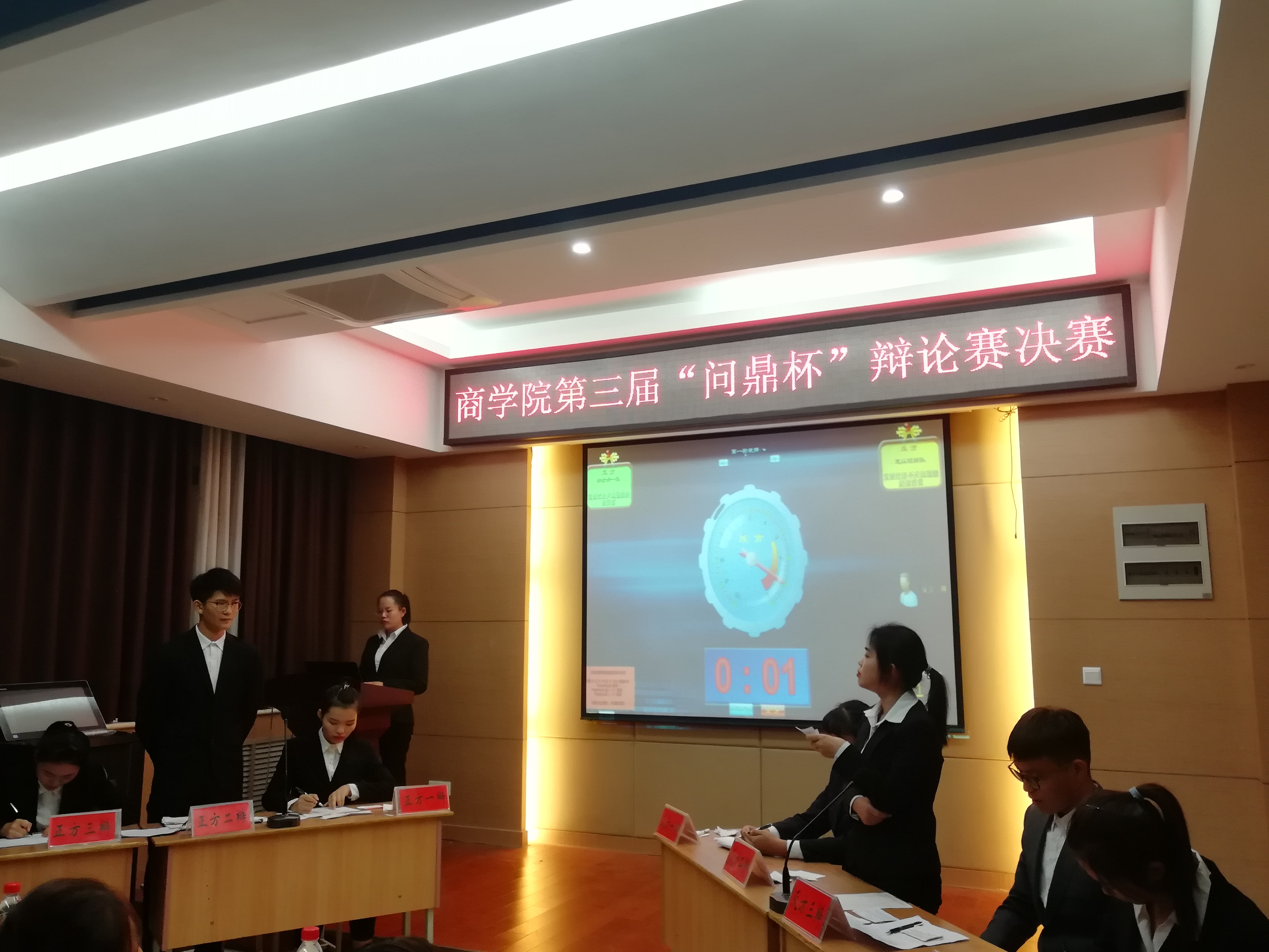 为提高广大青年学子的语言表达能力和逻辑思维能力,培养当代大学生的创新精神,10月9日晚七时,商学院在学院119会议室举行第三届“问鼎杯”辩论赛决赛。商学院2018级部分学生参加了此次活动。