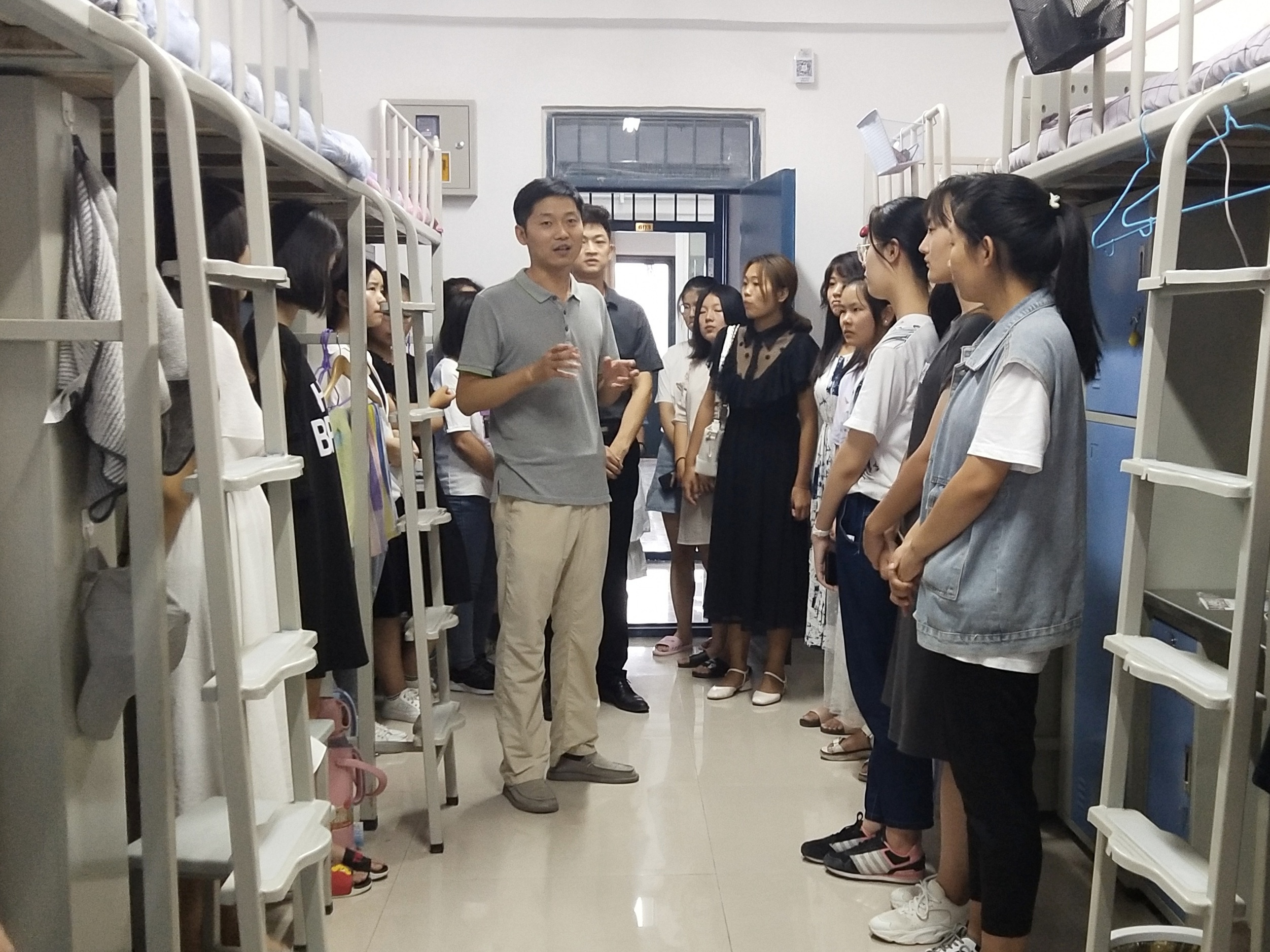 9月8日下午,商学院全体领导班子和各年级辅导员前往宿舍慰问2019级新生,帮助他们尽快适应新的学习和生活环境,并对新生生活用品、安全、宿舍环境等方面进行检查,确保新生入学有良好的生活环境。