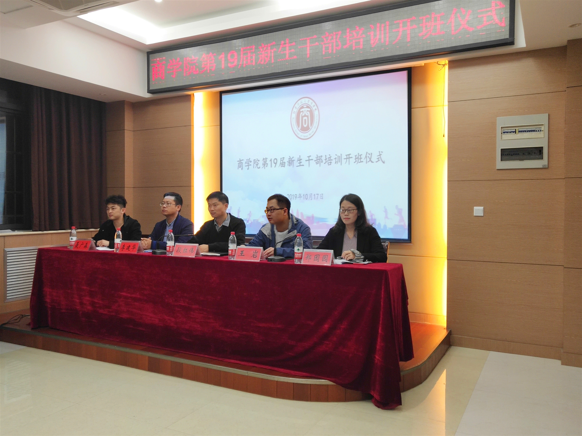 为加强新生干部队伍建设,培养其为同学们服务的责任意识和工作能力,切实提高他们的综合素质,10月17日晚,商学院于学院楼119报告厅举行了第十九届新生干部培训开班仪式暨开班第一课。商学院学生工作相关负责人受邀出席本次大会,学院2019级全体新生干部参会学习。