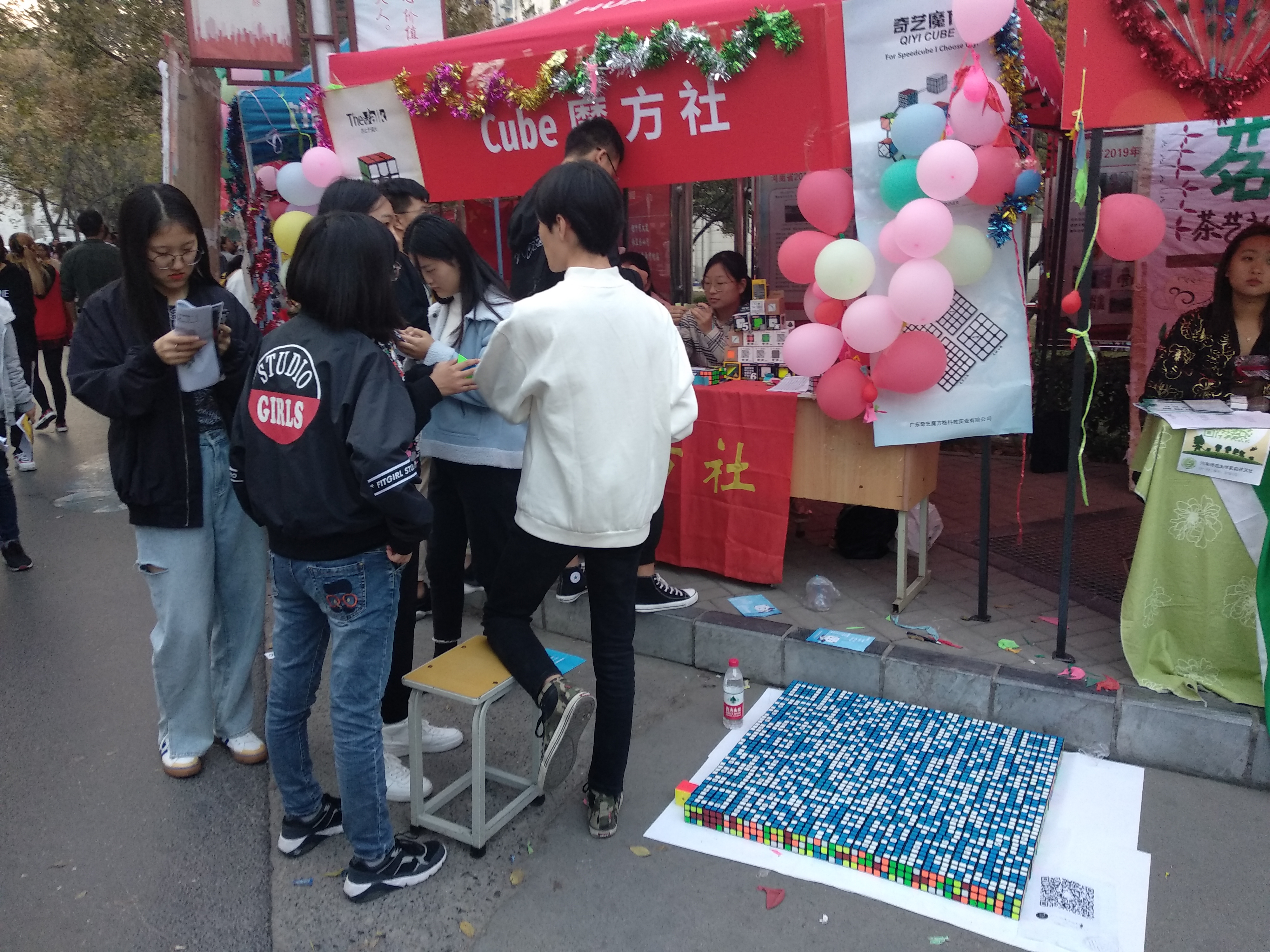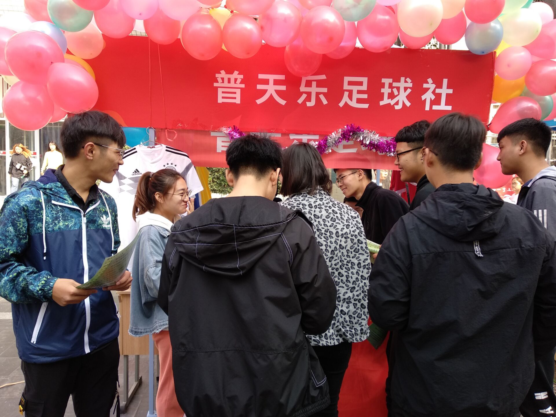 五彩缤纷的魔方在手指间流转,拼凑出各式各样的绚丽图案。别具一格的迎新群二维码也受到了同学们的青睐,充分体现了Cube魔方社成员悦动的灵感。驰骋广阔的绿茵赛场,挥洒心中的青春梦想。普天乐足球社就是足球爱好者的小家,社员们悬挂的球衣吸引同学们的纷纷驻足,加入足球社,他们将一起在足球场体验竞争的激烈,收获合作的喜悦。