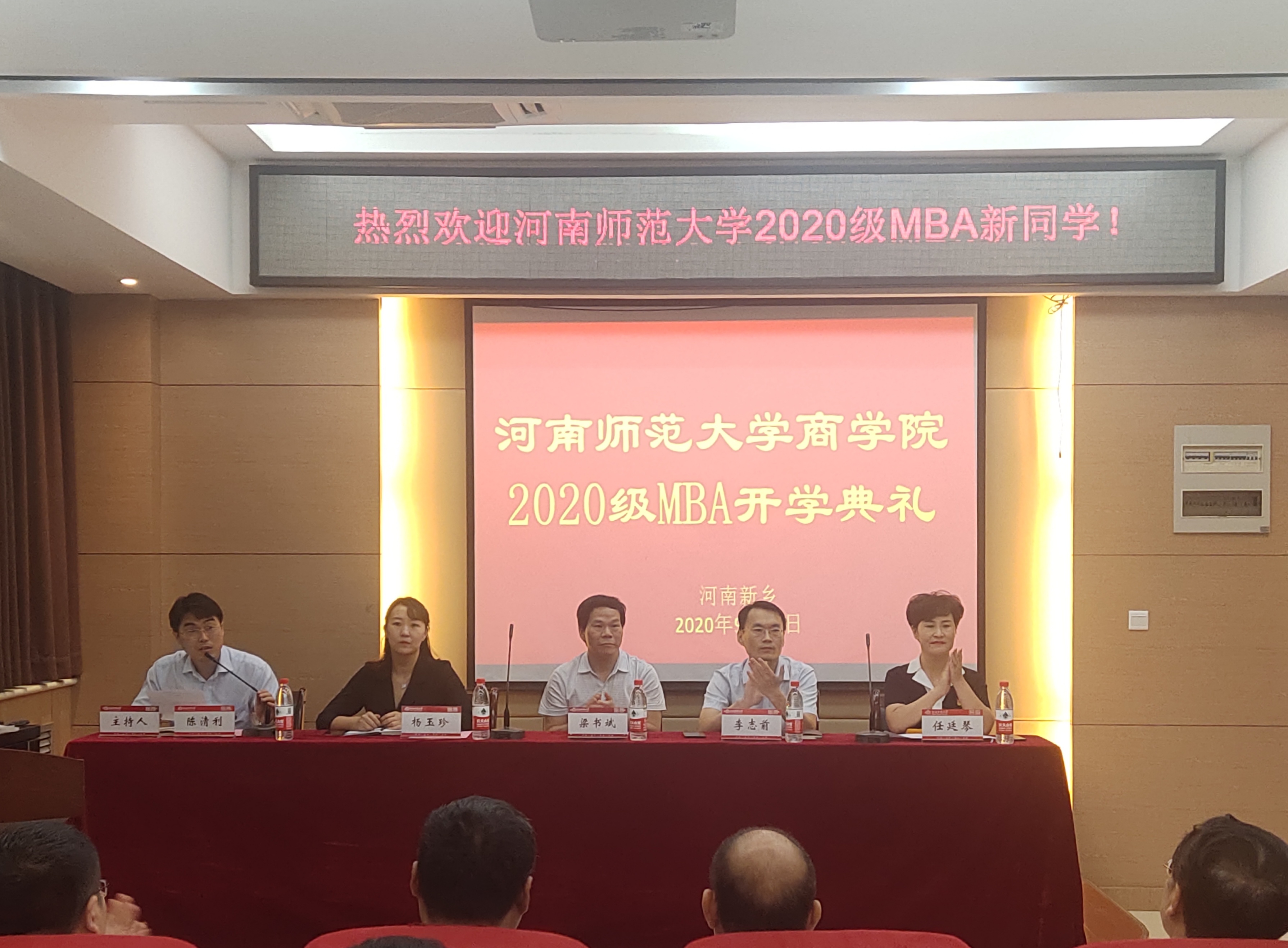 9月19日上午,河南师范大学2020级工商管理硕士(MBA)开学典礼于商学院学院楼119报告厅举行。河南师范大学研究生院副院长梁书斌,河南春江集团副总裁、商学院MBA校外导师代表任廷琴教授受邀参加本次开学典礼。同时参加本次仪式的还有商学院相关领导、教授、MBA教师代表以及2020 级MBA学员。开学典礼由商学院副院长陈清利主持。