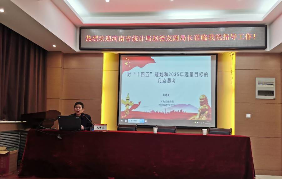 赵德友教授首先对母校的培养表达了深切的感恩之情,表示将充分发挥个人所能,为母校的人才培养、学术交流、校地合作等方面贡献力量。随后,赵德友教授为我院师生做了一场题为《对“十四五”规划和2035年远景目标的数据分析》的学术报告,从国民经济核算的关键概念出发,全面介绍了我国改革开放以来特别是“十三五”时期经济发展取得的辉煌成就,深入分析了未来十五年我国发展战略地位及内外部环境,详细阐述了我国“十四五”发展目标的亮点,突出强调了“十四五”时期经济社会发展的重点任务和重大举措,即统筹推进“五位一体”总体布局,协调推进“四个全面”战略,坚定不移贯彻五大新发展理念,一个“主题”,一个“主线”、一个动力、三个“新”,建设11个“强国”和四个“中国”。同时,赵德友利用详实的数据,对 “十四五”时期我国社会经济发展的重点任务和重大举措进行了详细解读。
