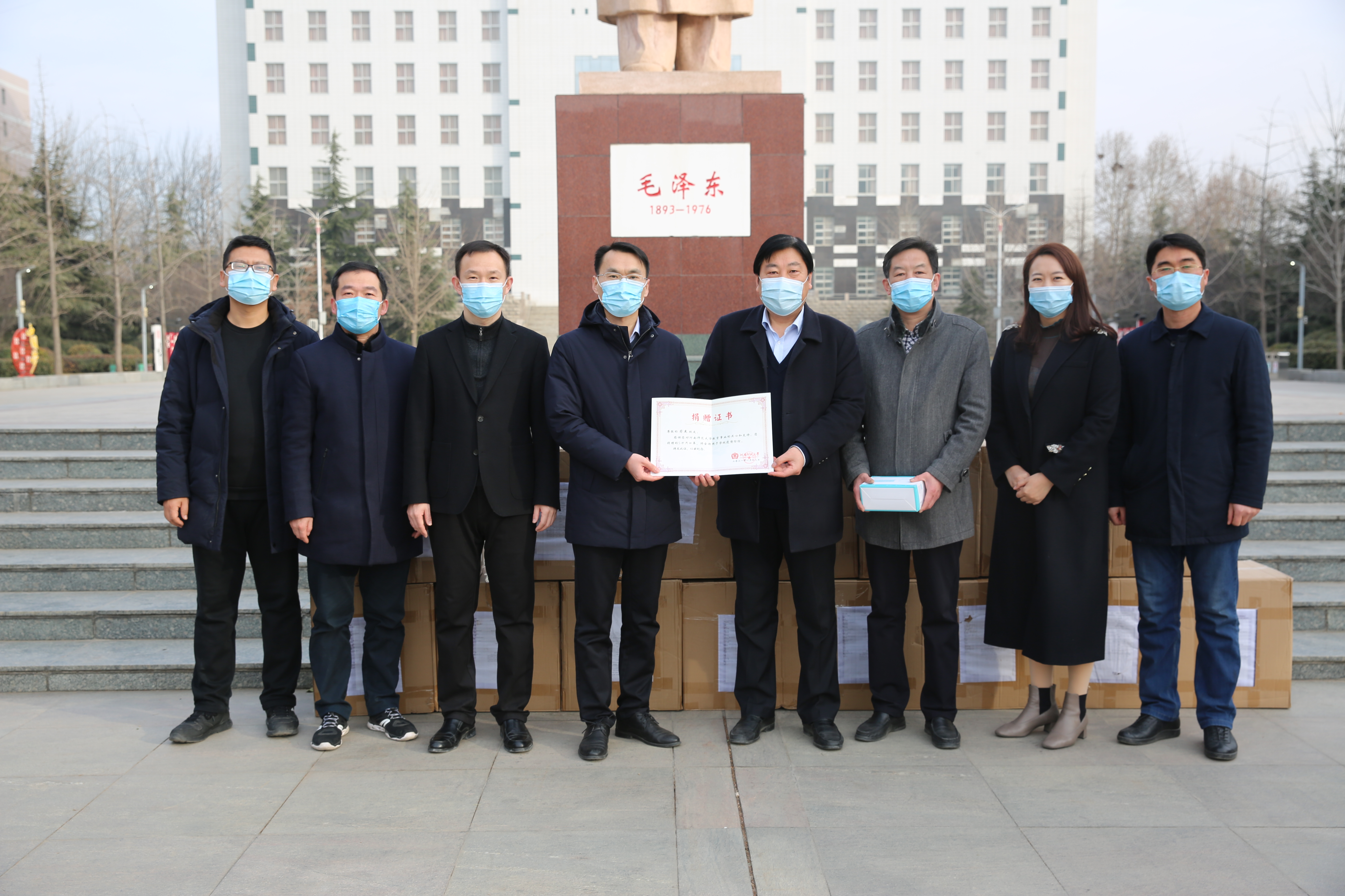 2月1日上午,我校校友企业家,商学院2010届毕业生符杰新冠肺炎疫情防控物资捐赠仪式在图书馆前广场举行。校党委副书记陈广文代表学校疫情防控指挥部接收捐赠,校长办公室、校友与基金工作办公室、校医院、商学院相关负责人参加捐赠仪式。