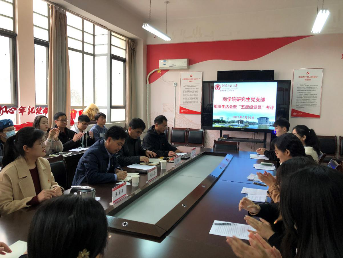 根据学校《关于召开2020年度基层党组织组织生活会、开展民主评议党员和“五星级党员”考评的通知》的文件精神,3月16日上午,商学院研究生党支部在学院二楼党员活动室开展2020年度组织生活会,并对照要求,开展民主评议党员和“五星级党员”考评工作。全体党员参加了会议。会议由支部书记张萌萌主持。党支部联系领导、校党委常委、副校长刘玉芳作为普通党员参加了组织生活会。