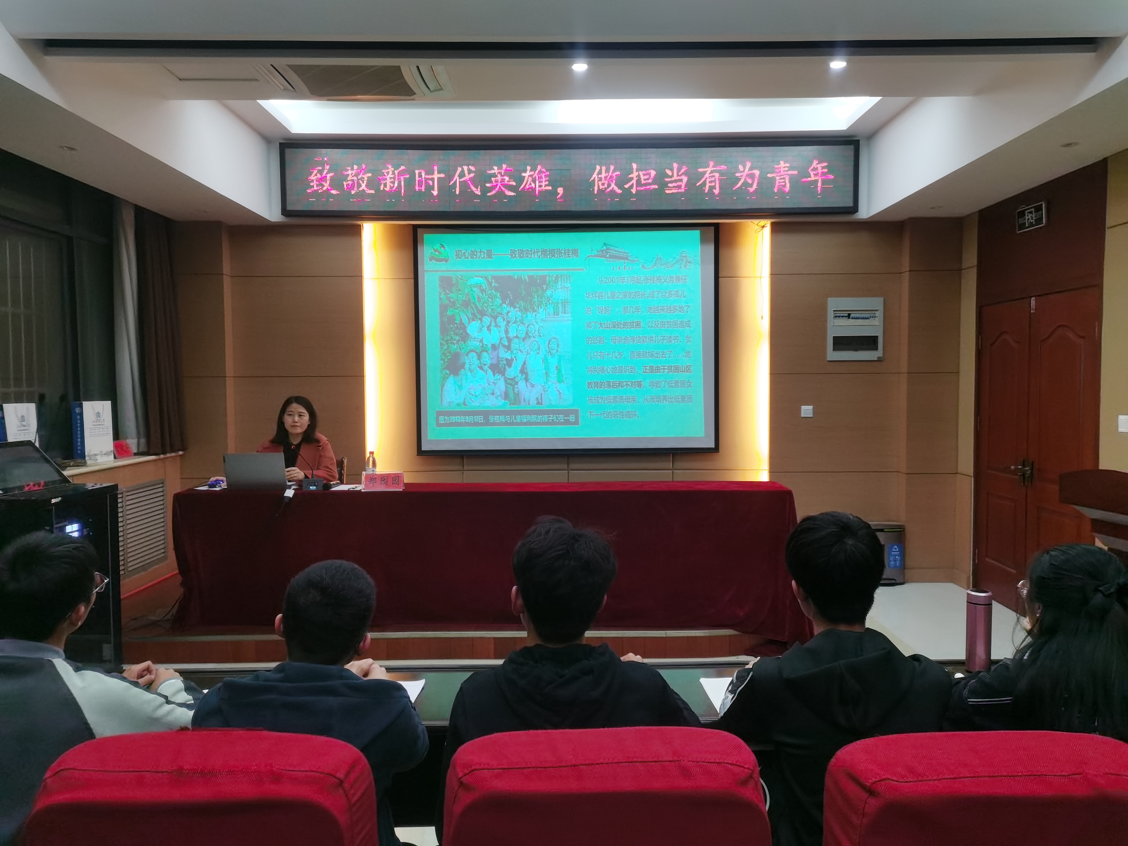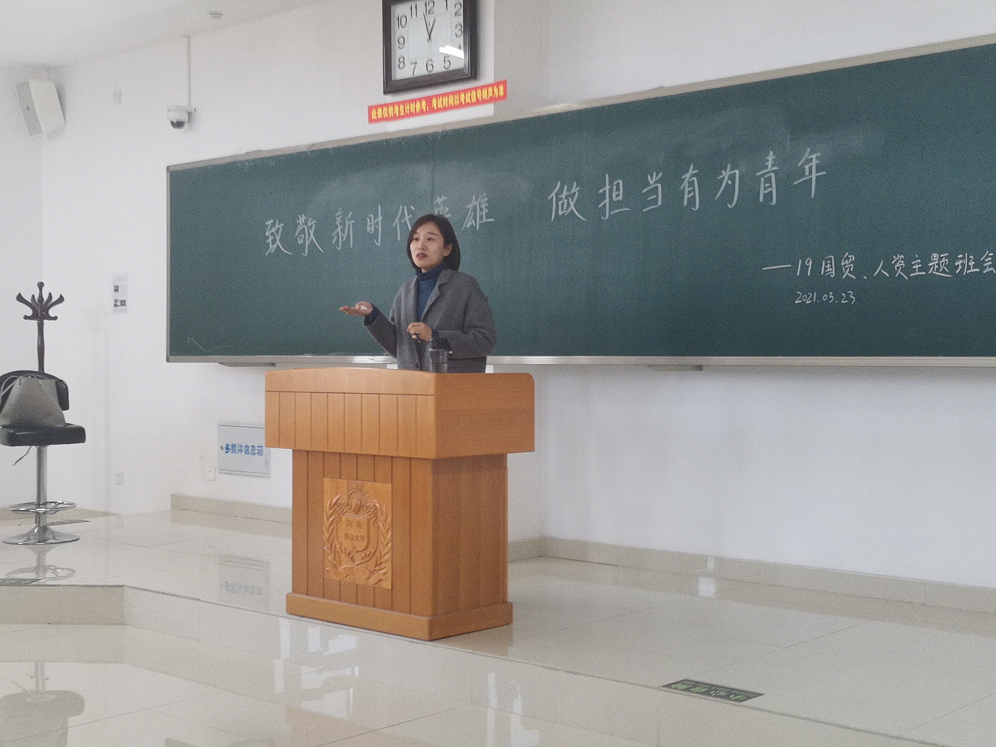 为大力弘扬英雄精神,呼吁同学们做有担当的新时代青年。3月23日,我院各年级积极开展“致敬新时代英雄,做担当有为青年”主题班会。各年级辅导员和班主任高度重视,积极参与。他们向同学们介绍了抗疫、驻边、扶贫中涌现的新时代英雄的伟大事迹,教育同学们幸福生活的来之不易。接着,同学们围绕主题进行探讨,并发表感想。“清澈的爱,只为中国”,同学们纷纷表达出对于新时代英雄们的敬意和感动。同时,他们表达了吾辈当自强,应锐意进取,勇于攀登的青年担当。班主任李广瑜老师强调广大同学要学习和发扬英雄精神,不忘求知初心,求真务实,刚健进取,成为一个有理想有担当的优秀青年。