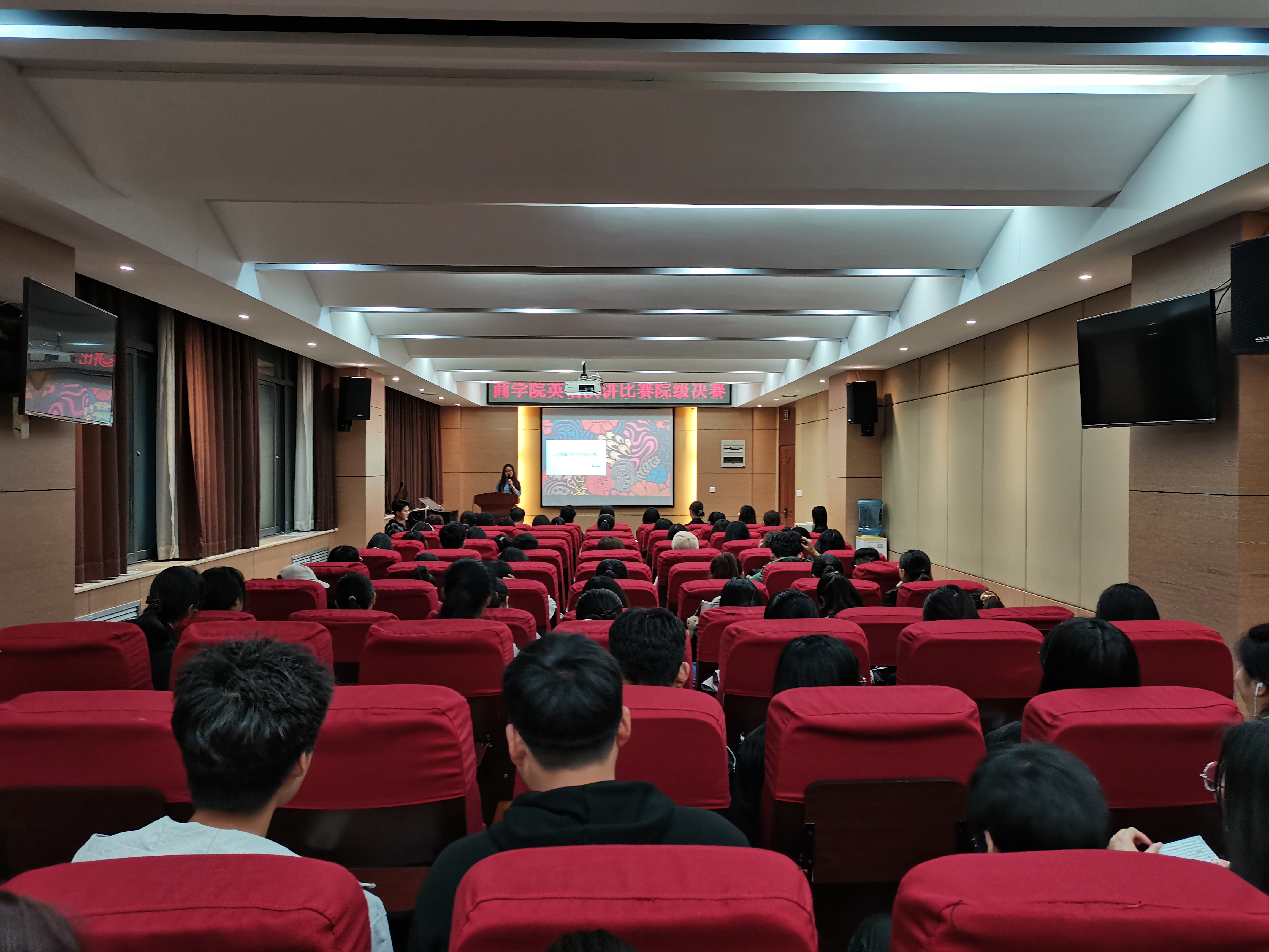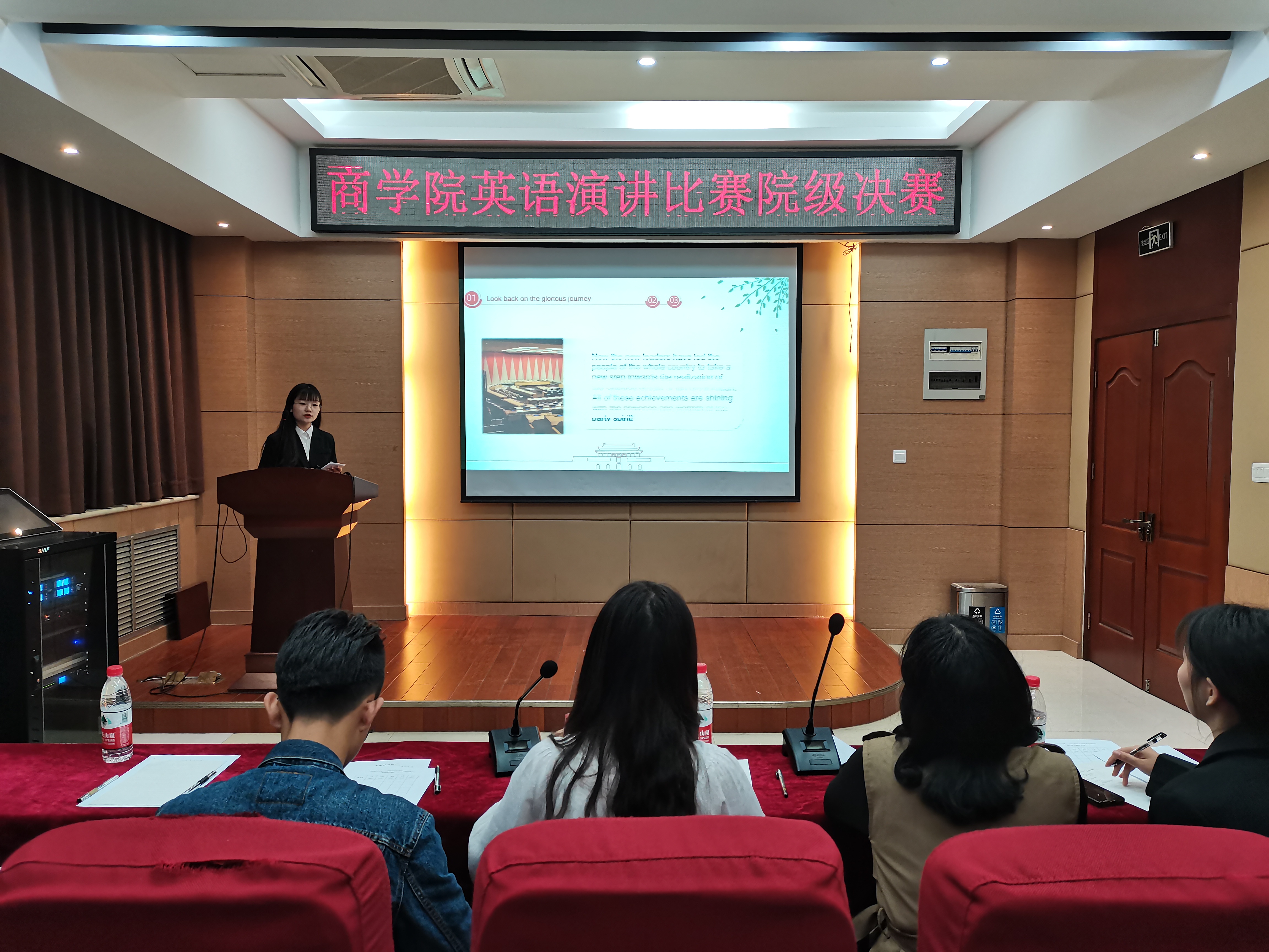 为贯彻落实习近平新时代中国特色社会主义思想和党的十九大精神,落实立德树人根本任务,营造学院英语学习氛围,丰富校园文化,4月21日晚,商学院于119会议室举办英语演讲比赛决赛。外国语学院侯悦、谢慧颖应邀出席,商学院部分学生参加此次活动。
