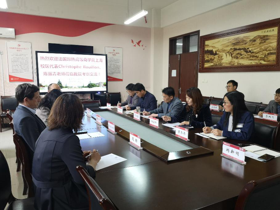 4月28日下午,法国昂热高等商学院上海校区代表Christophe Rouillon、陈丽青老师来商学院考察交流,就中法合作办学事宜进行商讨,座谈会在学院二楼会议室进行。国际合作与交流处处长赵扬、国际教育学院主持工作的副院长董海出席会议。学院党政领导及骨干教师代表参加了本次交流会。