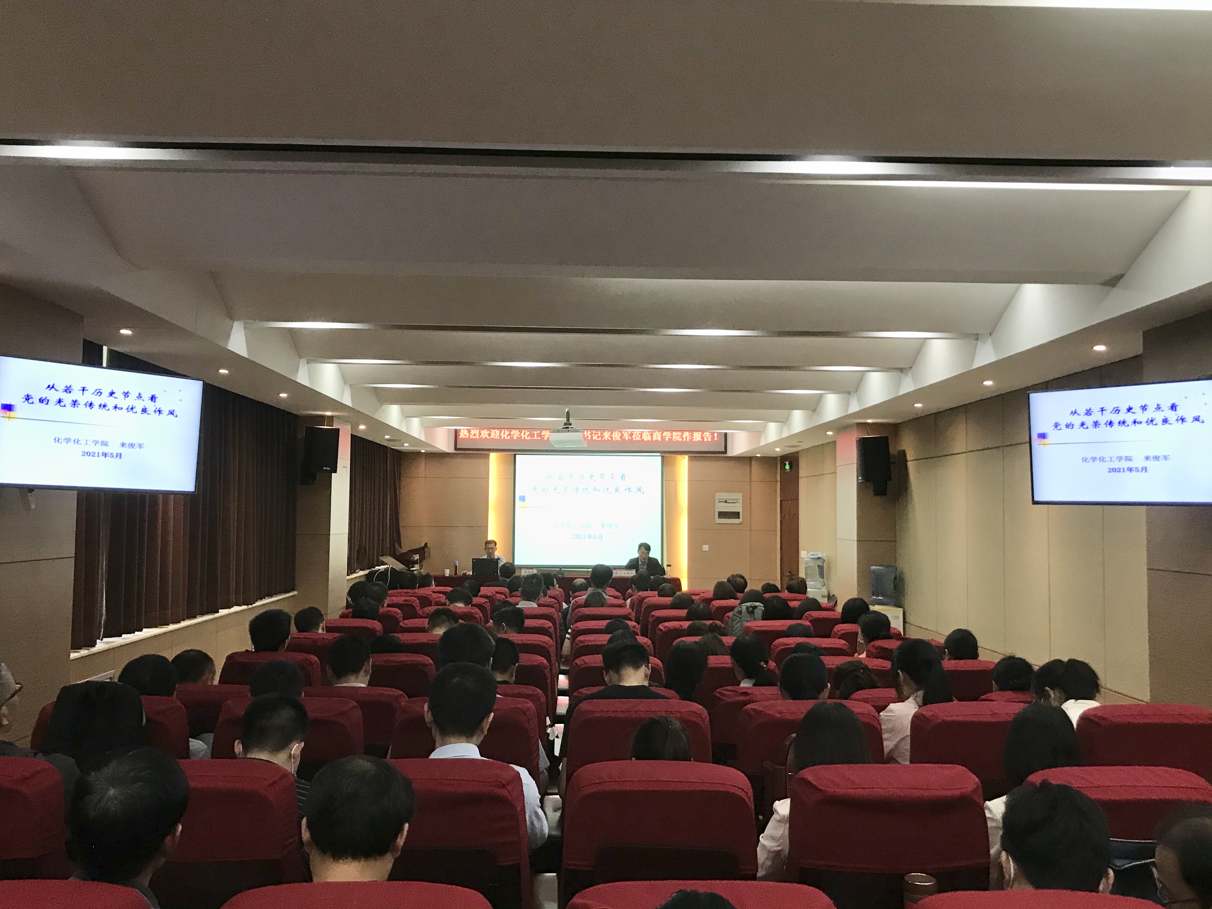 为深入开展党史学习教育,教育引导党员师生学史明理、学史增信、学史崇德、学史力行,5月18日下午,商学院党委举办党史学习教育宣讲会,邀请校党史学习教育宣讲团成员、化学化工学院党委书记来俊军作党史学习教育专题宣讲报告。学院领导班子及师生党员代表100余人参加报告会。报告会由商学院党委书记李志前主持。
