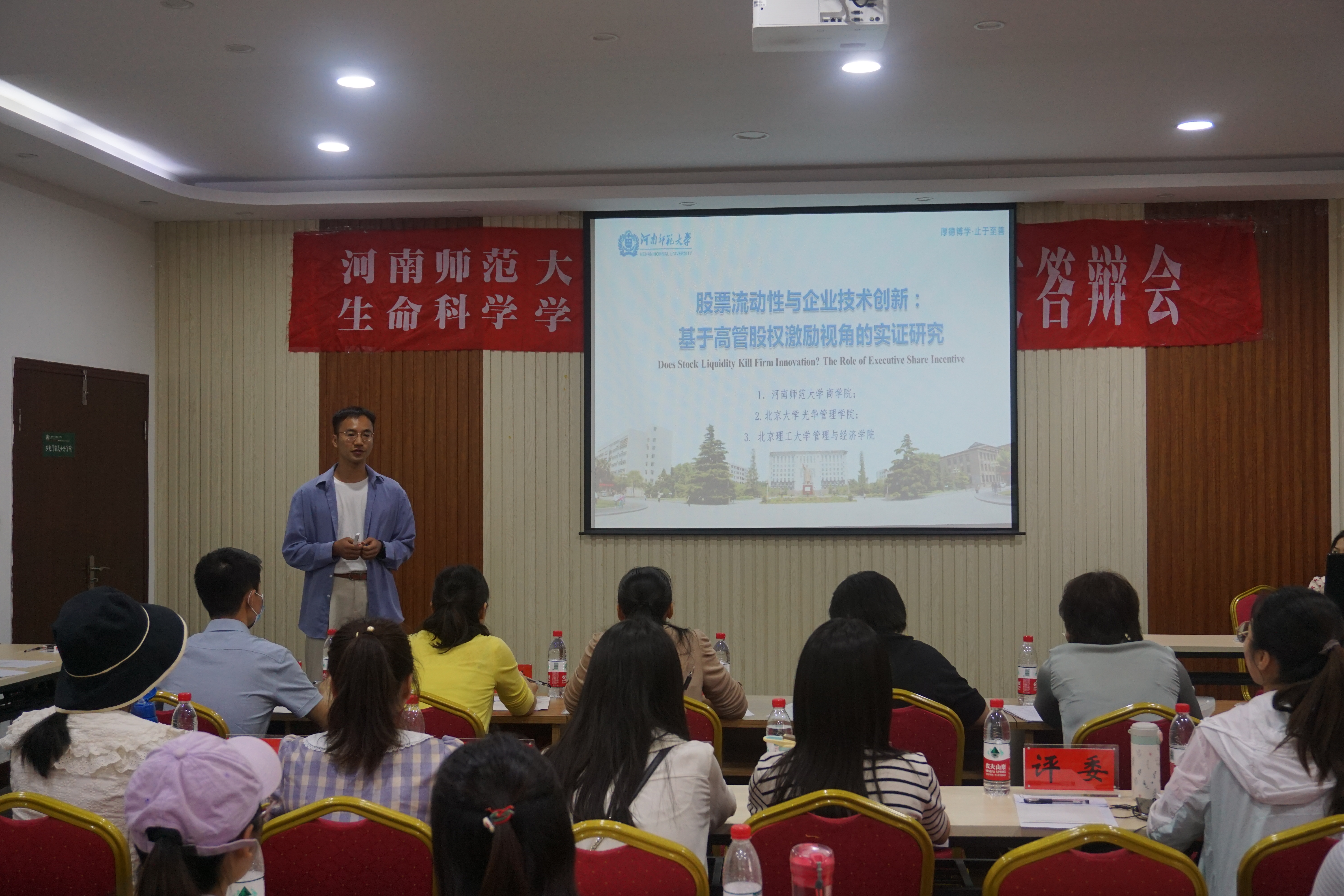 商学院获奖作品为《Does Stock Liquidity Kill Firm Innovation? The Role of Executive Share Incentive》。指导教师为商学院副院长海本禄。赛场上,常鹏宇结合展演PPT,从研究背景、研究问题、研究假设、研究设计、研究建议和政策建议六个方面展开阐述。他结合现实提出两种假设,并从数据来源与处理、变量选取与测度、模型设计与方法等方面开展分析,最后从证券市场的监管者、股东和决策者三个角度提出政策建议。学院研究生常鹏宇表现出良好的学术素养和综合素质,获得评委一致好评,最终以文科组第一名成绩斩获特等奖。