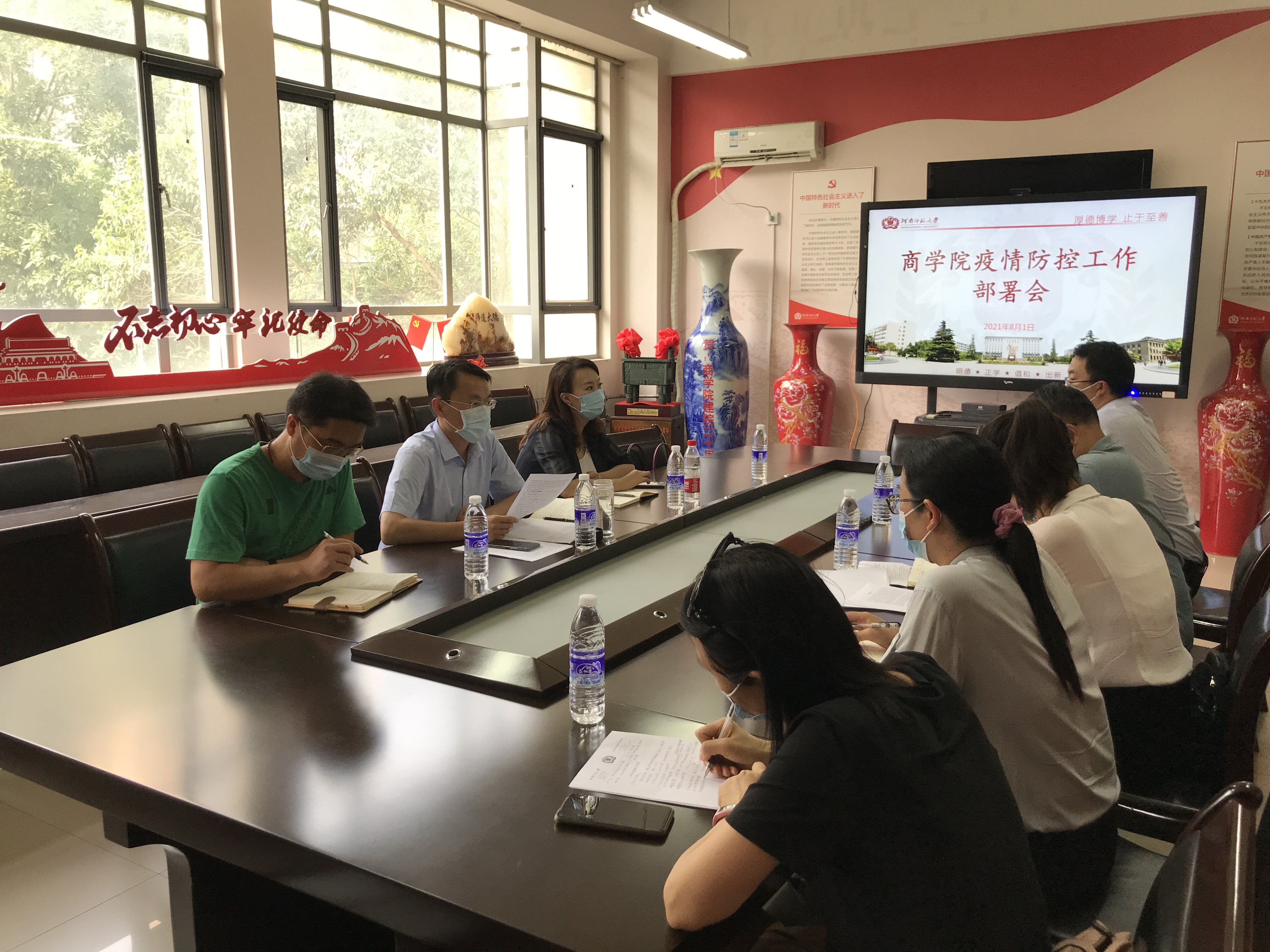 8月1日下午,商学院在学院二楼会议室召开疫情防控工作部署会,学院领导班子成员、全体党支部书记、辅导员参加会议。会议由学院党委书记李志前主持。