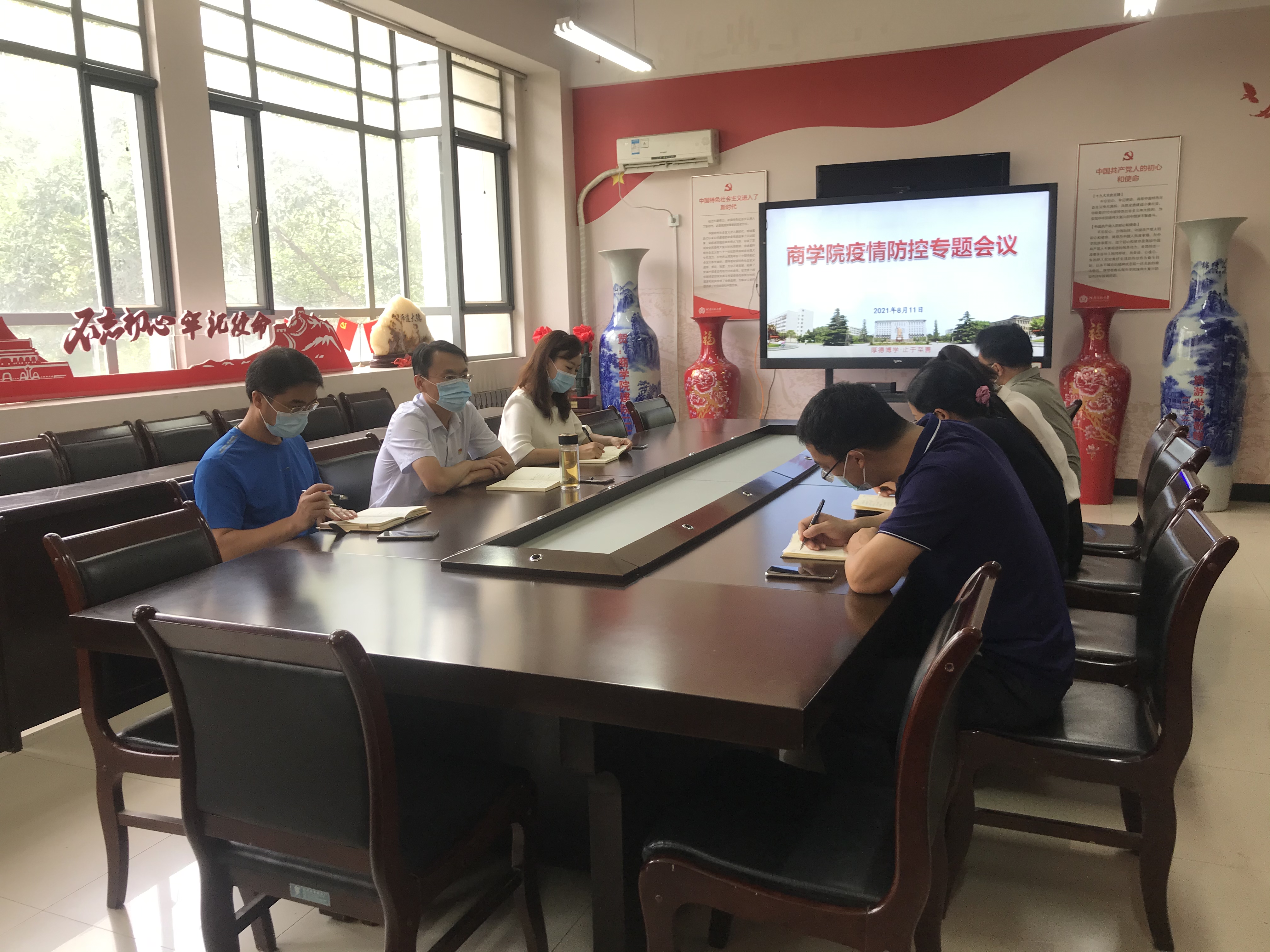 8月11日上午,商学院在学院二楼会议室召开疫情防控专题会议,学院领导班子成员、全体辅导员参加会议。会议由学院党委书记李志前主持。