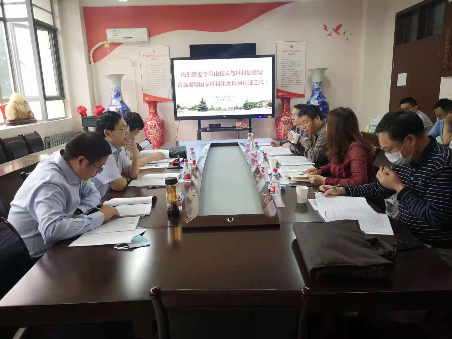 2021年9月1日上午,商学院2021年度国家社科基金重大项目申报专家论证会在商学院二楼会议室召开。会议邀请了国家社科基金重大项目首席专家李雪山副校长,社科处李永贤处长、刘新争副处长,商学院任太增教授、胡国恒教授等担任论证专家,进行现场论证与指导。会议由商学院院长杨玉珍教授主持。商学院党委书记李志前出席会议并发言。