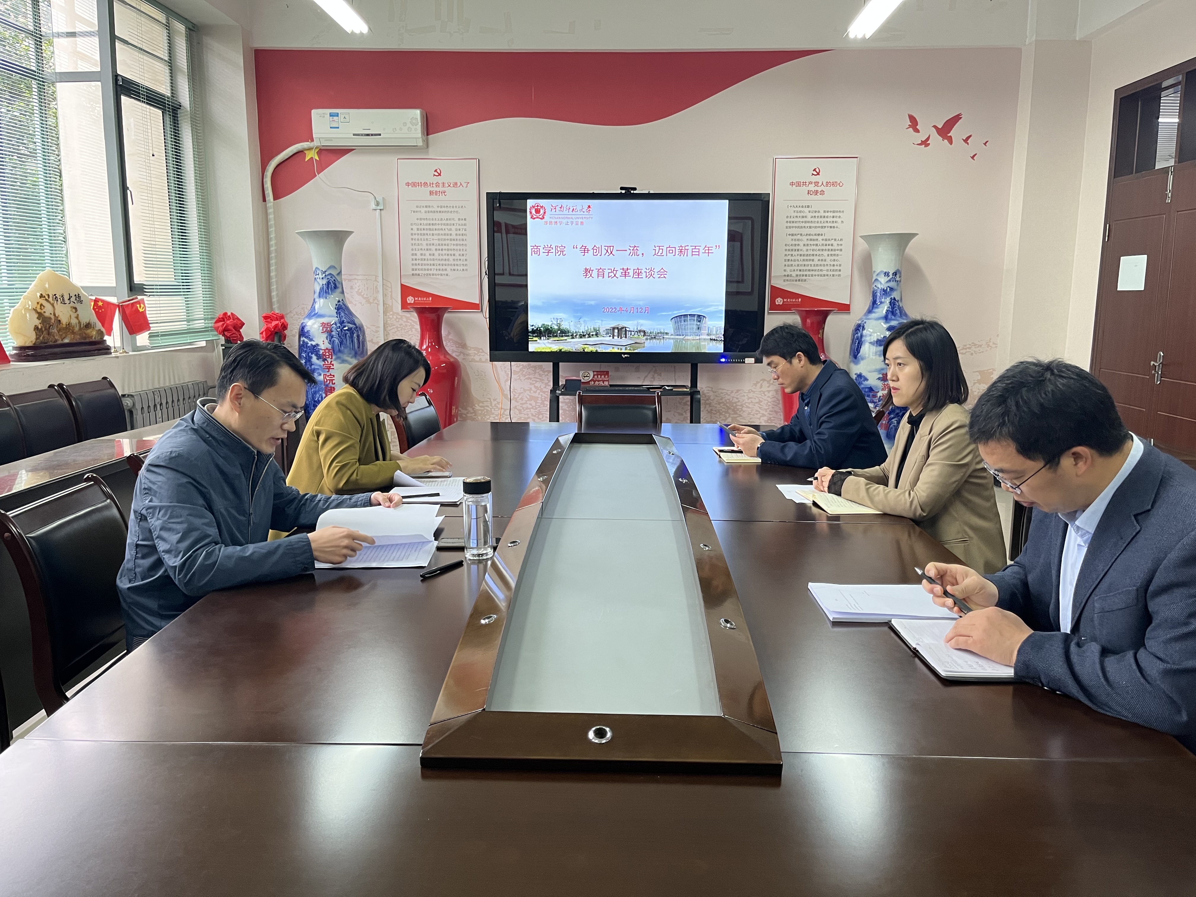 4月12日上午,商学院在学院224会议室召开“争创双一流,迈向新百年”教育改革务虚会,学院党政领导班子、党委委员参加了会议。会议由学院党委书记李志前主持。