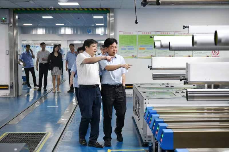 刘玉芳一行在邵长金陪同下参观了集团的氨纶、包装等生产车间,实地考察了产品生产工艺流程,全方位了解了集团的生产规模、运营情况、智能化生产线和科技研发能力。