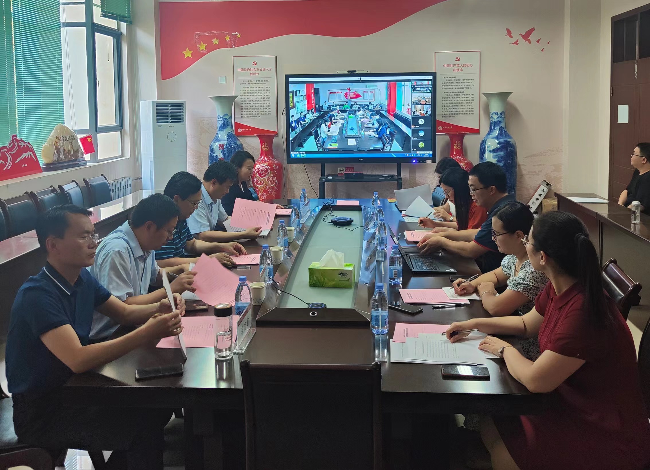 6与17日下午,为了进一步增强乡村振兴与共同富裕研究院的政府决策咨询服务能力,提升新型品牌智库建设水平,商学院在二楼会议室举办高校品牌智库建设论坛。校党委常委、副校长李雪山,教育厅社语处正处级调研员魏军、副处长杨维纳和社语处南大伟、张娇,河南师范大学社科处处长李永贤、副处长刘新争出席论坛。本届论坛由商学院院长杨玉珍主持,采用线上线下相结合的方式进行。商学院全体领导班子成员与六十余名青年学者参加本次活动。