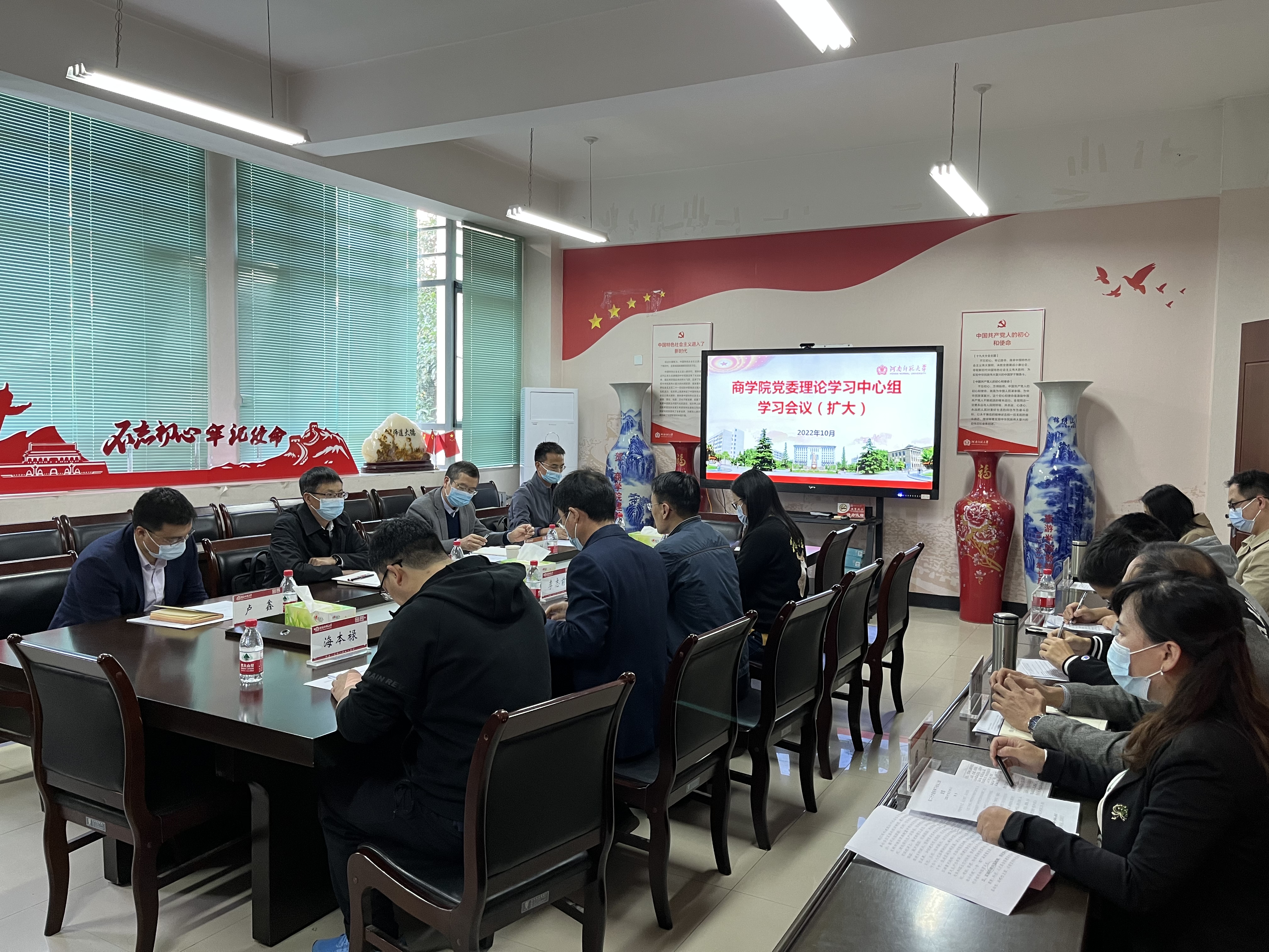 10月18日下午,商学院党委在商学院224会议室召开理论学习中心组(扩大)学习会议,学院党委委员、各党支部书记、科技干部代表和教师代表参加了会议,校党委副书记张尚字莅临指导,校基层党委、党总支政治理论学习巡听旁听工作第二组组长任永利及全体成员列席会议。会议由商学院党委书记李志前主持。
