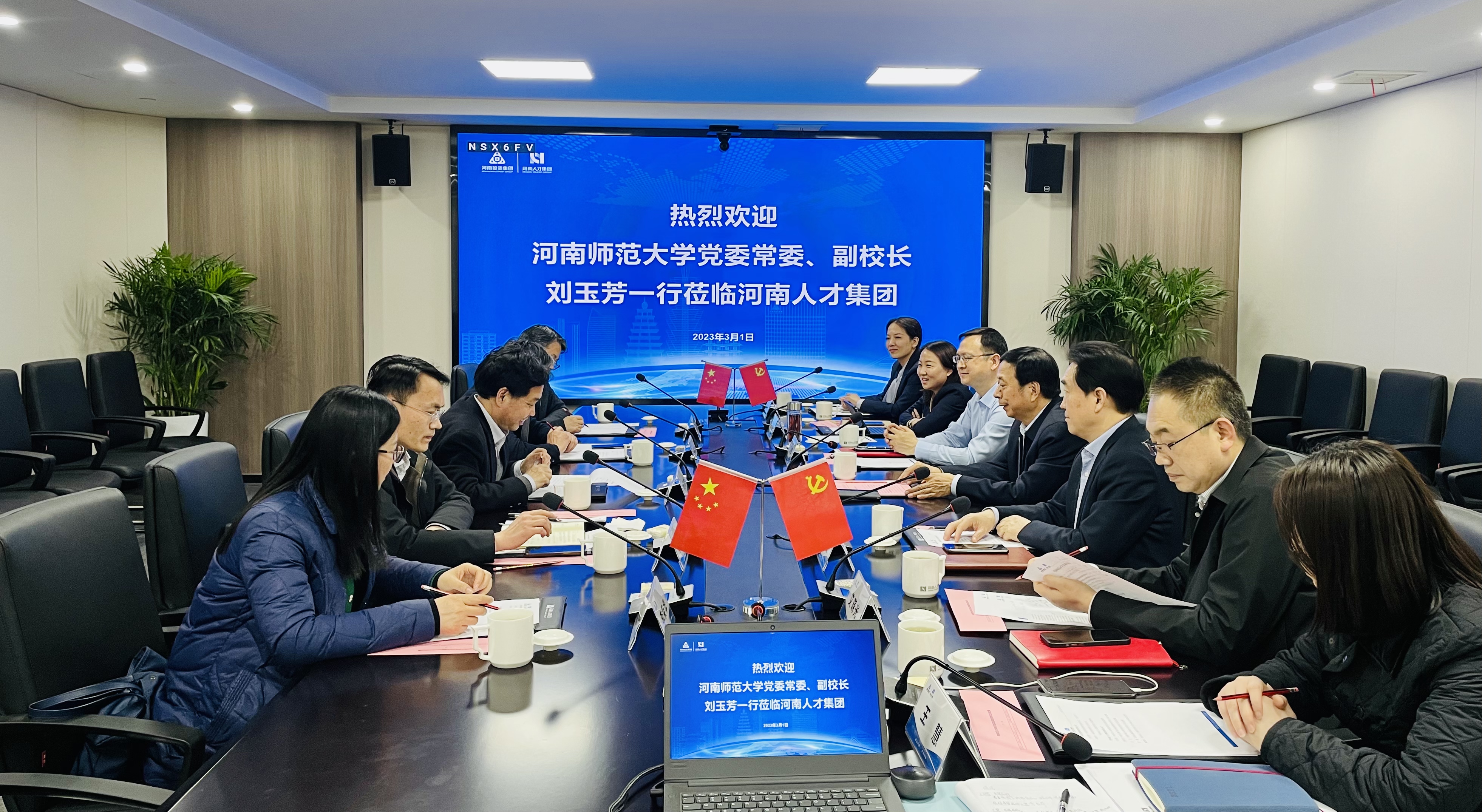 为深入贯彻党的二十大报告所提出的“职普融通、产教融合、科教融汇”精神,落实省委、省政府“创新驱动、科教兴省、人才强省” 战略,推动学校产学研深入发展和人才高水平培养工作,2023年3月1日,副校长刘玉芳带队到河南投资集团、河南人才集团座谈交流,共商合作大计。发展规划处、商学院相关负责人参与座谈交流。
