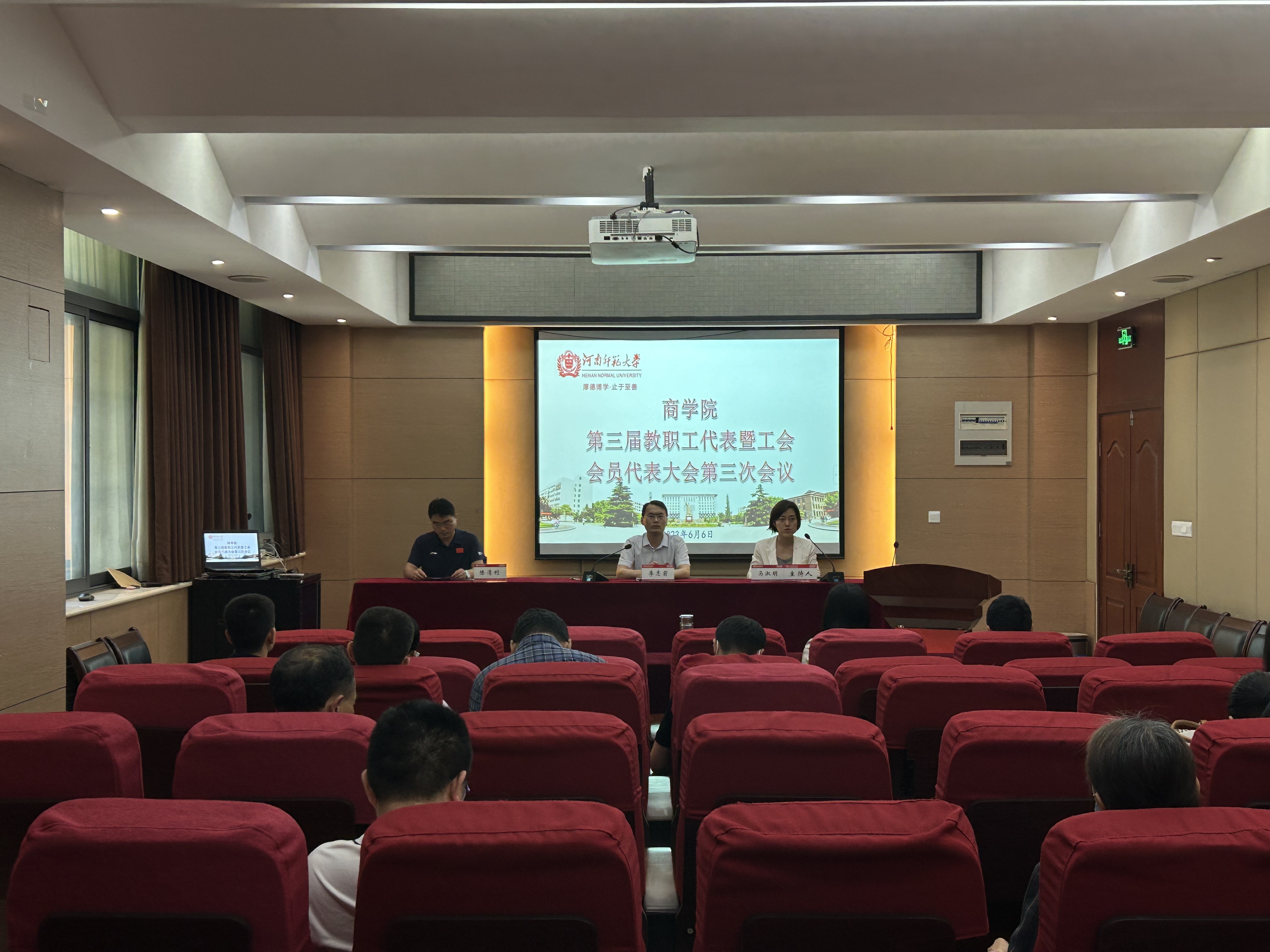 6月6日下午,商学院第三届教职工代表暨工会会员代表大会第三次会议在办公楼119会议室召开,27名教职工代表参加会议,会议由学院党委副书记马淑明主持。