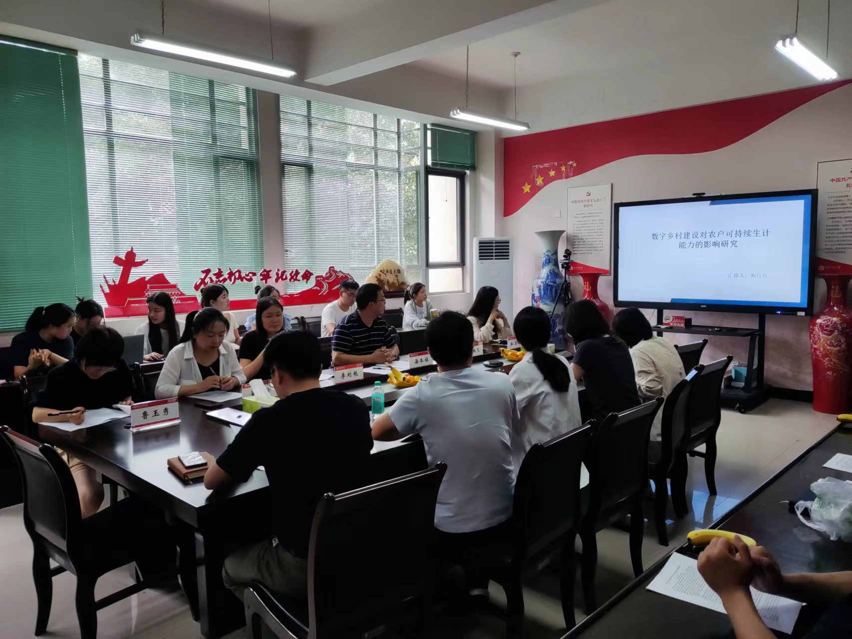 为提高学院青年教师学术产出、提高教师学术交流积极性,6月16日下午,商学院在二楼会议室举办第十二期“学术沙龙”活动。和月月博士对工作论文《数字乡村建设对农户可持续生计能力的影响研究》进行了分享。本次学术沙龙邀请了李刘艳副教授、夏会珍博士和鲁玉秀博士作为特邀点评人,活动由海本禄教授主持,部分学院骨干教师与硕士研究生参加了该活动。