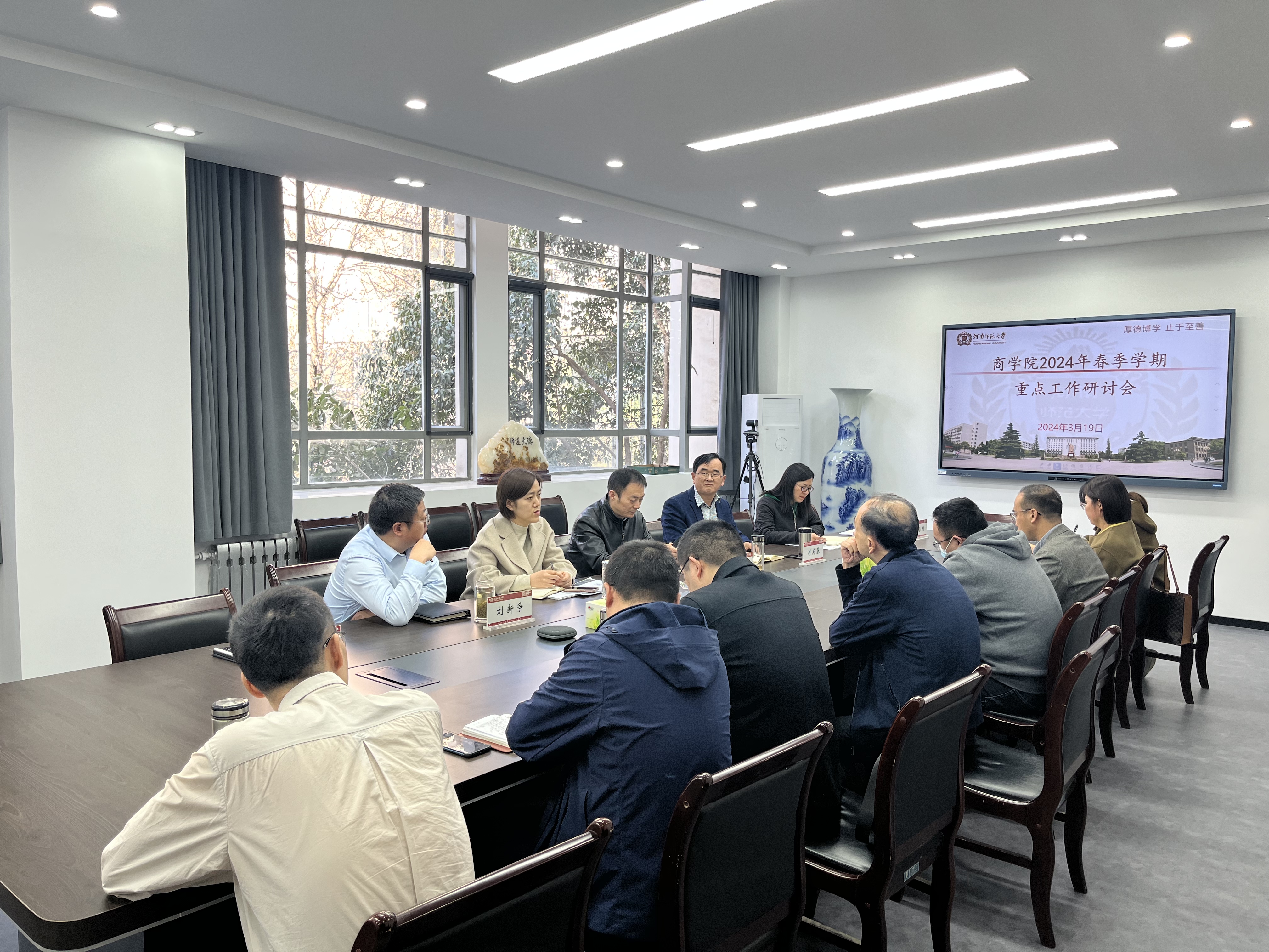 3月19日下午,商学院在学院二楼会议室召开2024年春季学期重点工作研讨会。学院全体处科级干部参加了会议,会议由院长刘英基主持。