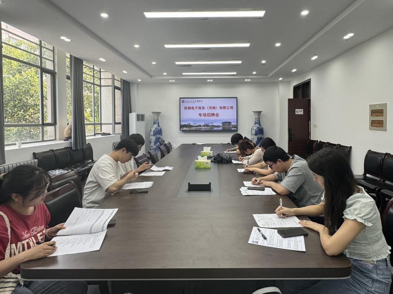 为促进企业与学院的深度互动与精准对接,提供多元化职业发展路径,5月21日下午,西部电子商务(河南)有限公司来我院于学院224办公室举办专场招聘会。商学院党委副书记马淑明、2020级辅导员赵玮以及2024届毕业生代表参加本次招聘会。