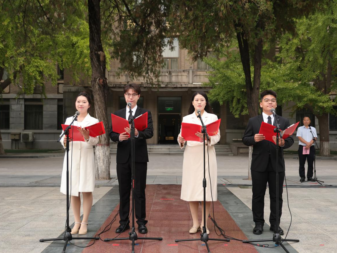 葛照金在主持仪式时表示,在庆祝新中国成立76周年的庄严时刻,升国旗仪式是对祖国母亲的深情告白,全体青年学子要立报国之志,把准人生航向,在“厚德博学,止于至善”的校训熏陶中筑牢信仰之基,让青春的航向始终与祖国发展同向同行;要怀爱国之情,勇担时代重任,心怀“国之大者”,在民族复兴的征程中书写青春华章;要练强国之能,展现青春作为。以“请党放心,强国有我”的铮铮誓言为动力,在强国建设、民族复兴伟业中贡献青春力量。