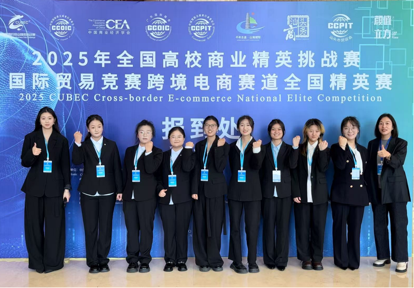 在11月22日举行的全国精英赛阶段,我院晋级的两支队伍再创佳绩,斩获“全国精英奖”及“产品展洽会一等奖”。全国精英赛作为赛事体系中含金量最高的环节,设置选品发布会、产品展洽会、人才双选会三大核心模块,构建了“以赛促学、以赛促产、以赛促就业”的综合实践平台。在选品发布会上,我校团队以“潮汕特色产业跨境赋能”为主题,系统展示了针对汕头优势产业的跨境电商运营方案,体现出扎实的专业功底与创新思维。在产品展洽会上,同学们精心布置展台,与来自全国各地的参赛团队及企业代表开展深入洽谈,展现了良好的商务沟通与品牌推介能力。在同期举办的人才双选会中,师生与阿里巴巴国际站、广东好女人母婴用品股份有限公司等多家企业招聘负责人面对面交流,进一步明晰了跨境电商岗位能力需求,为未来职业发展锚定了方向。