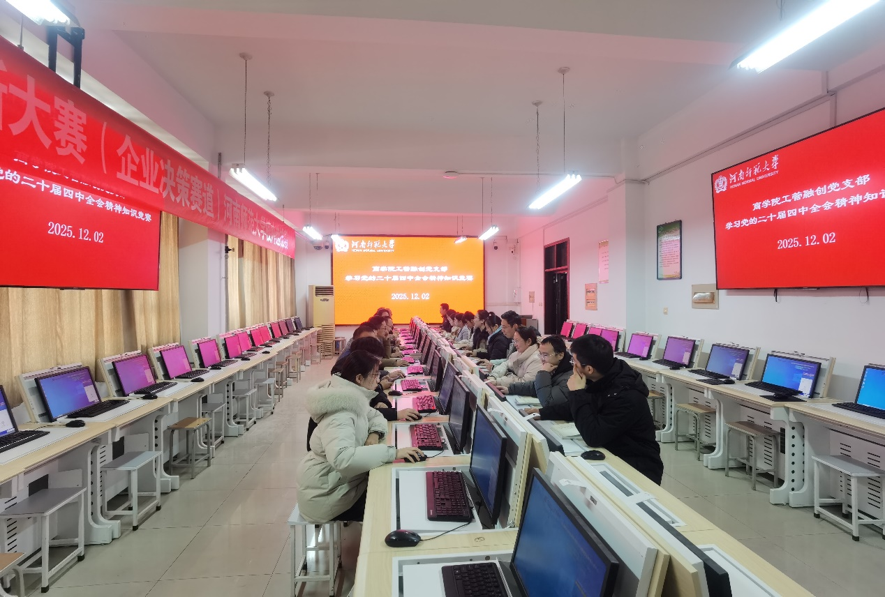 专题讲座结束后,党支部在学院机房开展了以“学深悟透全会精神,凝心聚力奋进新程”为主题的知识竞赛,全体党员认真作答,现场气氛热烈,学习成效显著。