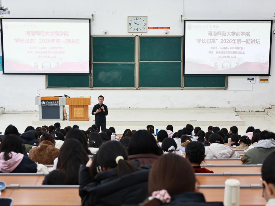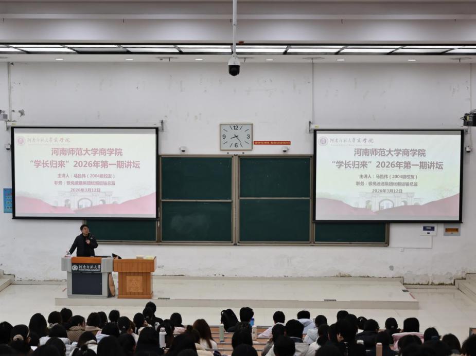 为充分发挥优秀校友的榜样示范作用,积极引导学生科学规划职业生涯,3月12日上午,商学院在文昌楼102教室隆重举办了“学长归来”2026年度首期讲坛。本期讲坛特邀商学院2004级经济学杰出校友、极兔速递集团纭毅运输总监马昌伟担任主讲嘉宾。商学院党委书记常晓丽、党委副书记陈清利以及全体辅导员共同出席,同学们踊跃参与,现场气氛热烈,讲坛由陈清利主持。