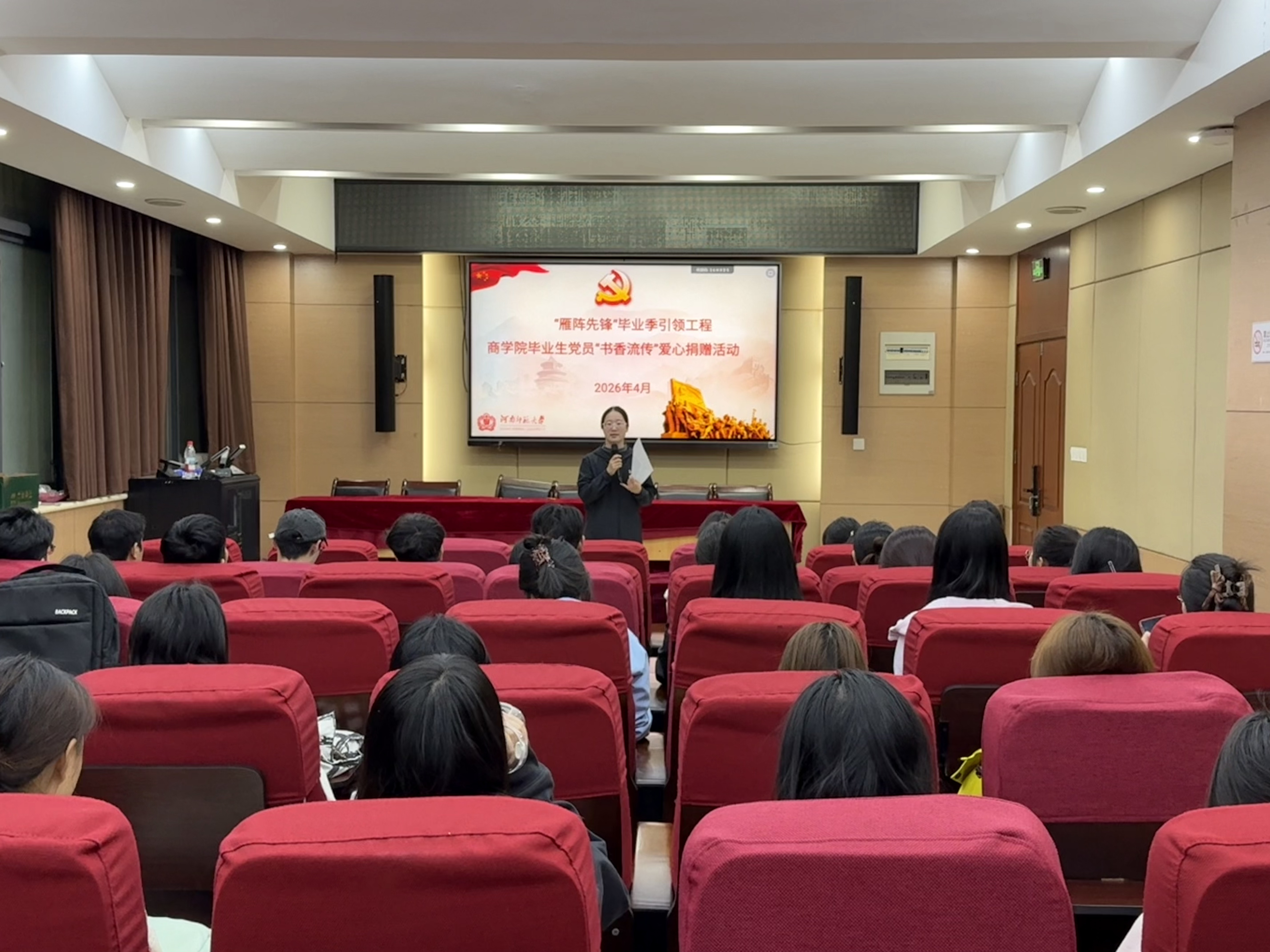 为深化毕业季党员思想引领,发挥毕业生党员先锋模范作用,4 月21日下午,商学院在119会议室开展“雁阵先锋”毕业季引领工程——毕业生党员“书香流传”爱心捐赠活动。商学院党委副书记陈清利、全体毕业生党员及2023级学生代表参加。活动由商韵新程党支部书记杨娜主持。