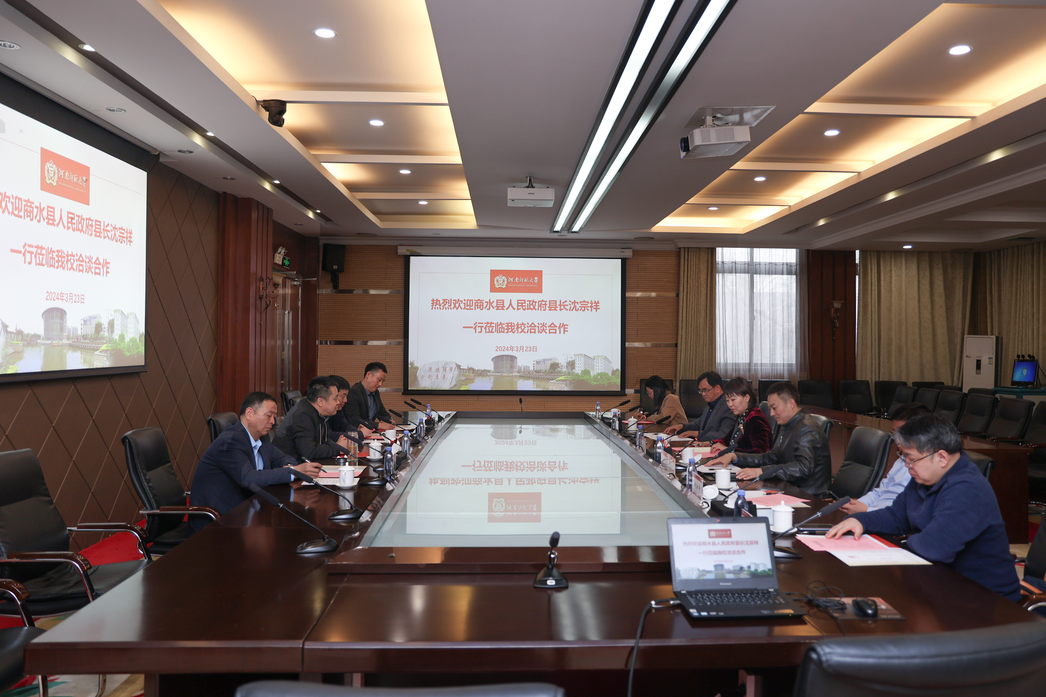 沈宗祥代表商水县政府感谢学校对商水县经济社会发展的关心和支持,介绍了商水县基本情况、发展现状和战略规划,希望双方加强校地合作,充分发挥学校的人才优势、科研优势和育人优势,帮助商水县优化产业发展规划,完善产业链条,增加成果产出,提升核心竞争力,为商水县发展注入新动能、激发新活力。