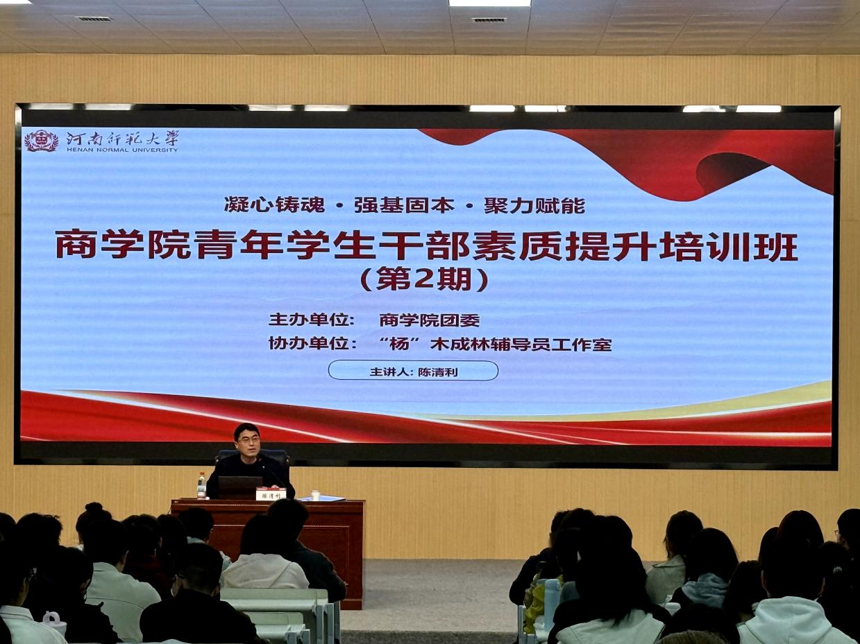 为进一步提升学院青年学生干部的综合素质与履职能力,强化使命担当与服务意识,商学院于3月29日在树蕙堂隆重举办了第二期青年学生干部素质能力提升培训班。培训班由商学院团委主办,“杨”木成林辅导员工作室协办,并得到了学院党委的高度重视与大力支持。培训班由商学院团委书记郭琛昊主持。