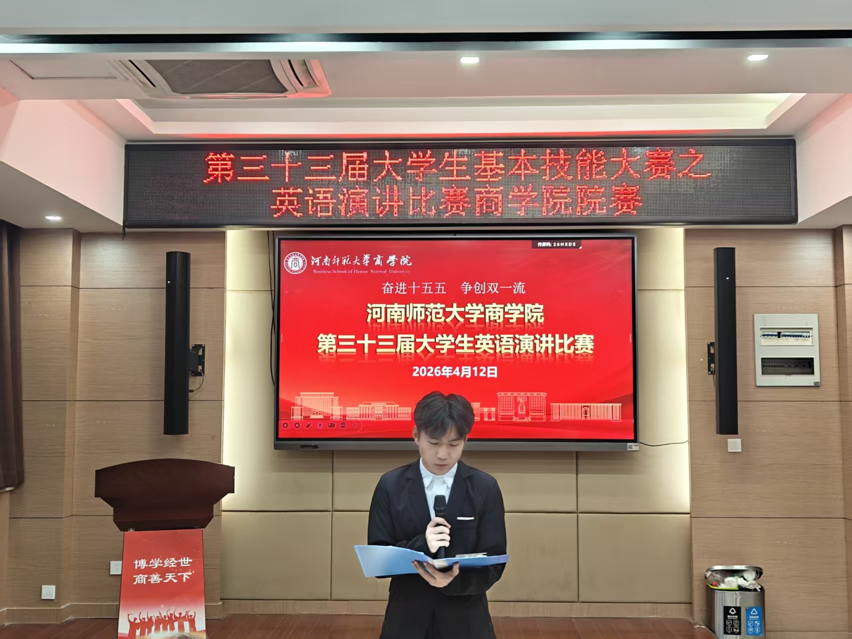 为提升同学们的英语表达素养,助力学校“双一流”建设与国际化人才培养,4月12日晚,商学院于119会议室举办第三十三届大学生英语演讲比赛院赛。