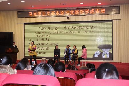 2015年12月26日14:30,河南师范大学马克思主义学院在C楼多功能报告厅举行《马克思主义基本原理》教学实践全校展演活动,这是在每个班级、每个学院的几十上百个节目的基础上经过层层选拔而精选出来的节目精品展演。马克思主义基本原理概论的任课老师莅临活动现场,参加活动的有9位大众评委、各个学院推出的的18个代表队。