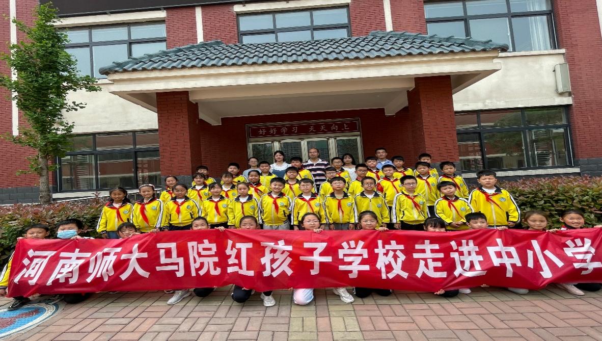 2022年4月26日上午,河南师范大学马克思主义学院“红孩子学校”四名宣讲员在全国高校思政课名师工作室成员闫立超博士带领下,先后前往新乡市红旗区新一街小学、新乡市高新技术产业开发区振中小学,为小学生讲述红色故事,受到近500名师生的热烈欢迎和一致好评。