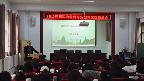 曲嘉做动员讲话,他指出,教育实习是师范教育贯彻理论联系实际原则、实现培养目标不可或缺的教学环节,是师范生成为一名好教师必须要经历的宝贵锻炼机会。学生要通过教育实习,树立坚定理想信念,养成道德素质,巩固专业知识,拓宽专业视野,学会运用唯物史观的立场、观点和方法分析和解决实际问题,提高专业理论、专业技能的运用能力和主动适应社会发展需要的能力,做到学史明理、学史增信、学史崇德、学史力行,努力成为从事党政群团、企事业单位党的建设、马克思主义理论、中国共产党历史、思想政治教育研究与宣传的复合型人才。