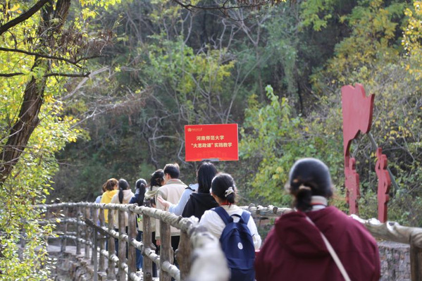 为深入学习贯彻党的二十届三中全会精神,落实习近平总书记关于思政课建设的重要指示,进一步构建“大思政课”实践育人格局,11月3日,马克思主义学院组织师生赴红旗渠开展“大思政课”实践教学活动。本次实践教学由学院副院长姚广利,教师代表米庭乐、隋延亭和2024级辅导员韩怡萍带队,本学期在授思政课《马克思主义基本原理》《思想道德与法治》《习近平新时代中国特色社会主义思想概论》等课程的化学、法学、历史学、教育学、美术学、食品、思想政治教育、中共党史等专业本科生和马克思主义理论专业研究生代表共计100余人参加。