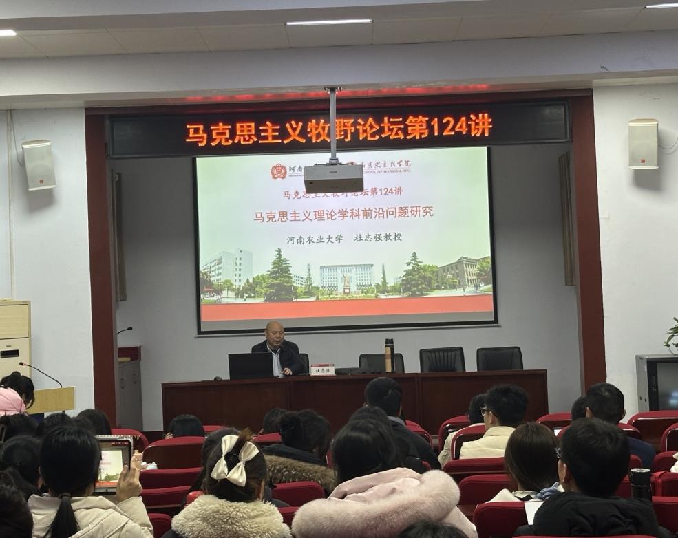 3月4日,河南农业大学马克思主义学院杜志强教授应邀为我院师生作主题为“马克思主义理论学科前沿问题研究”的学术报告。这是河南师范大学马克思主义学院牧野论坛第124期,讲座在平原楼108举行。本次讲座由马克思主义学院党委书记、院长蒋占峰教授主持,学院硕博研究生参加了此次讲座。
