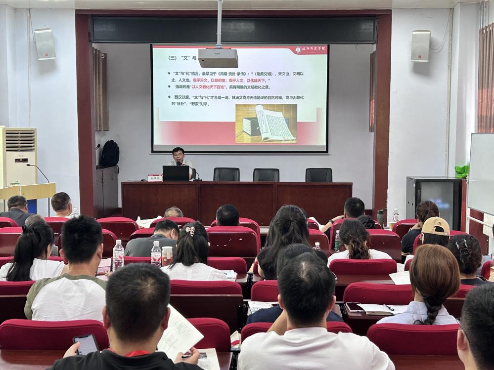 8月10日上午,洛阳师范学院马克思主义学院院长吴胜锋应邀为马克思主义学院师生作题为“坚定文化自信,旗帜鲜明反对历史虚无主义”的专题讲座。这是河南师范大学马克思主义学院牧野论坛第137期,讲座在平原楼108举行。本次讲座由马克思主义学院副院长孟攀科主持,马克思主义学院部分教师、硕博研究生参加了此次讲座。