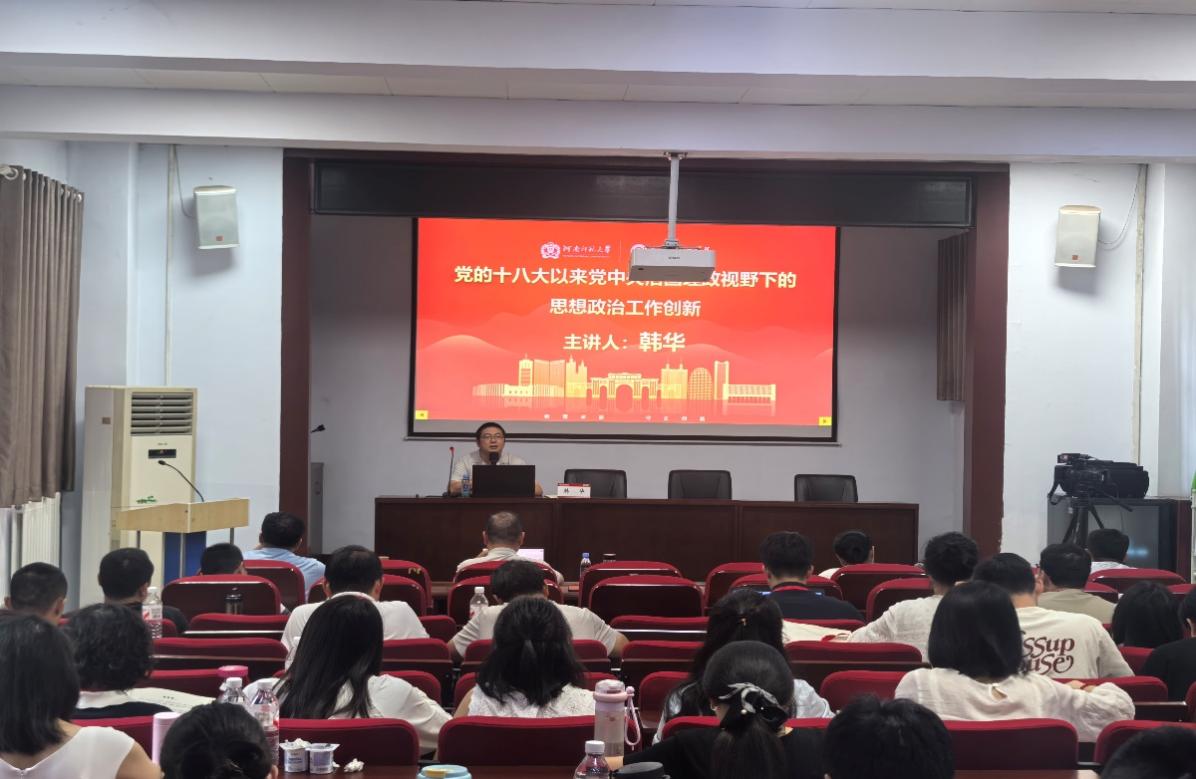 8月23日,首都师范大学马克思主义学院副院长、教授、博士生导师韩华莅临河南师范大学,为马克思主义学院师生作题为《党的十八大以来党中央治国理政视野下的思想政治工作创新》的专题讲座,这是马克思主义牧野论坛第140期。该讲座在平原楼108举行,学院师生代表80余人参加学习。