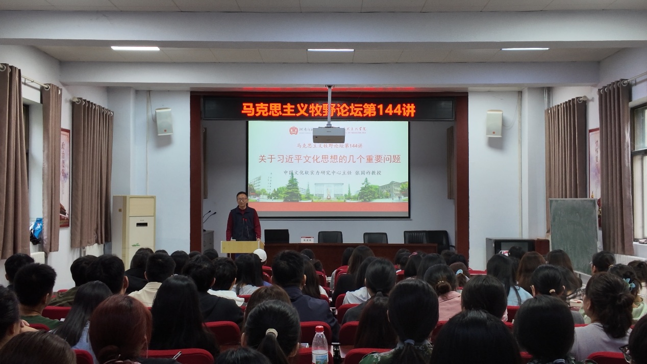 9月27日,中国文化软实力研究中心主任张国祚教授应邀为马克思主义学院师生作题为“关于习近平文化思想的几个重要问题”的学术讲座。这是河南师范大学马克思主义学院牧野论坛第144期,讲座在平原楼108举行。本次讲座由马克思主义学院党委书记、院长蒋占峰教授主持,马克思主义学院教师代表及硕博研究生参加了此次讲座。