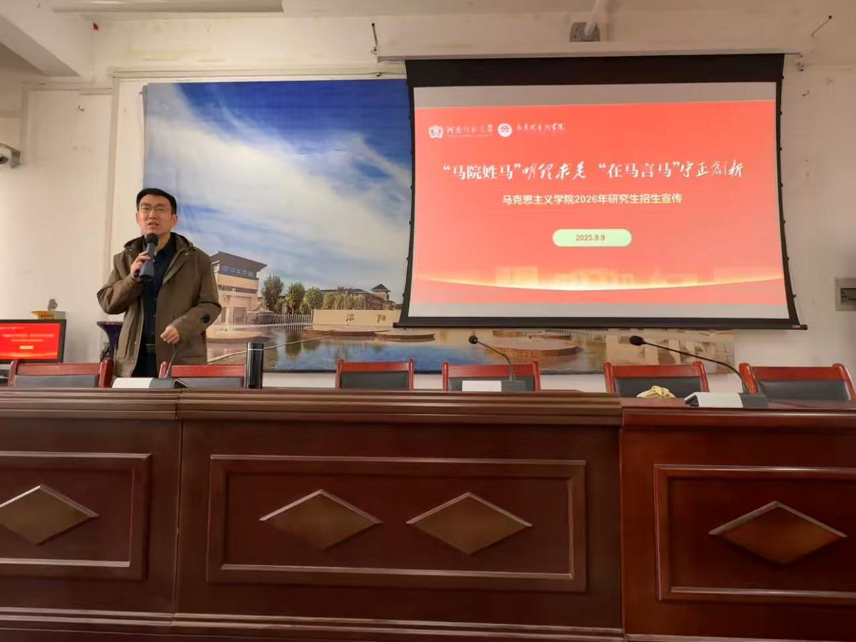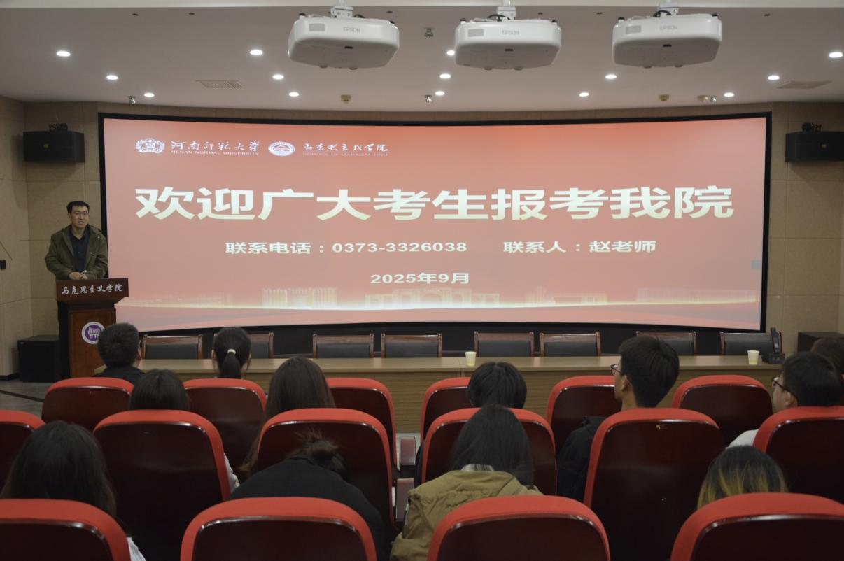 宣讲团紧紧围绕学院的核心竞争力,对学院的基本情况、学科专业特色、师资队伍、教学科研平台、研究生招生政策和培养管理等进行了全面介绍,重点展示了学院在研究生培养方面的独特优势,包括本硕博一体化的培养体系、个性化的培养方案、特色鲜明的思政课实践教学平台、覆盖全面的奖助学金体系等。同时,宣讲团还就学生们尤为关心的招生政策、考试大纲、复习重点、历年录取情况以及毕业生就业的广阔前景等实际问题,进行了权威而细致的解读。这番深入浅出的介绍,有效增进了在场学子对河南师范大学马克思主义学院的了解和认同,不仅消除了他们在报考选择上的诸多困惑,而且极大激发了他们浓厚的报考兴趣,为后续吸纳高质量生源奠定了坚实基础。