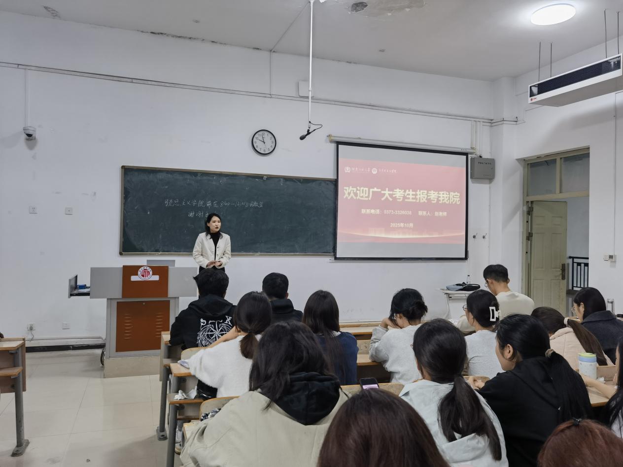 为吸引优质生源、提升研究生招生质量,增强我院在优质考生中的吸引力,我院组建了一支由副院长余保刚、姚广利领导,学院骨干教师、优秀研究生协同参与的高水平招生宣讲团队。近期,该团队先后赴洛阳师范学院、河南科技大学、商丘师范学院等省内多所高校,开展了一系列内容丰富的招生宣讲活动。此次活动旨在“走出去”,与兄弟院校及有志于深造的青年学子进行面对面交流,全面展示学院的办学实力与育人特色,充分体现了学院对研究生招生与培养工作的高度重视以及在拓展优质生源渠道上付出的不懈努力。