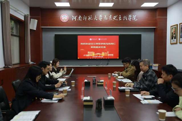 10月28日下午,汉江师范学院马克思主义学院党委书记夏金元、教师孙景强一行莅临我校座谈交流。座谈会在平原楼201会议室召开,学院党委副书记王秀杰、副院长余保刚及部分博士研究生代表参加。