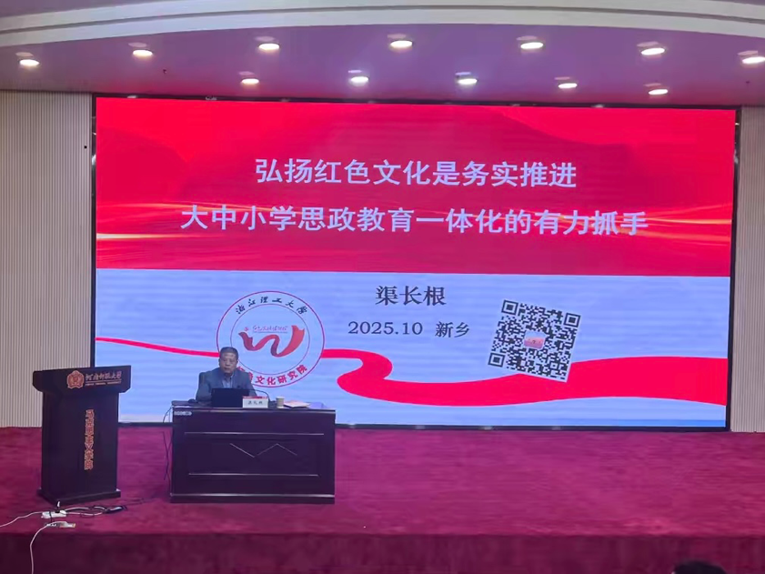 10月23日,浙江理工大学红色文化研究院院长渠长根教授应邀作题为《弘扬红色文化是务实推进大中小学思政一体化的有力抓手》的专题讲座。这是河南师范大学马克思主义学院牧野论坛第145期,讲座在思政课实践教学平台举行。本次讲座由马克思主义学院副院长余保刚教授主持,马克思主义学院教师代表及硕博研究生参加了此次讲座。