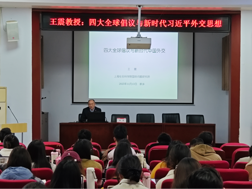 11月13日,上海社科院王震研究员应邀为河南师范大学马克思主义学院师生作题为“四大全球倡议与新时代习近平外交思想”的专题讲座。这是河南师范大学马克思主义学院牧野论坛第148期,讲座在平原楼108举行。本次讲座由马克思主义学院王安功老师主持,马克思主义学院教师及学生代表参加了此次讲座。