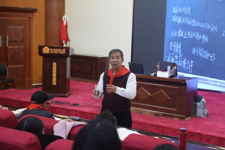 开班仪式结束后,培训第一课随即开讲。授课嘉宾为河南师范大学马克思主义学院二级教授、河南省少工委副主任蒋占峰,他以《聚焦主责主业、提升政治素质,讲好儿童化政治》为题,结合自身丰富的研究经验与实践案例,用亲切幽默、兼具温度与深度的语言,围绕“如何成为一名有情怀、政治强的新时代少先队辅导员”展开系统授课。课程内容紧密贴合辅导员工作实际,既有理论高度又有实践指导意义,帮助学员们进一步明晰了少先队思政工作的核心要求,深化了对工作方法的系统把握。