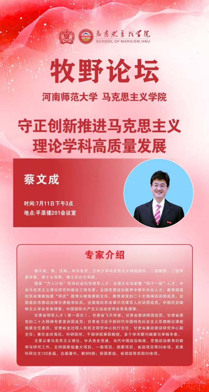 马克思主义牧野论坛 兰州大学蔡文成教授讲学通知