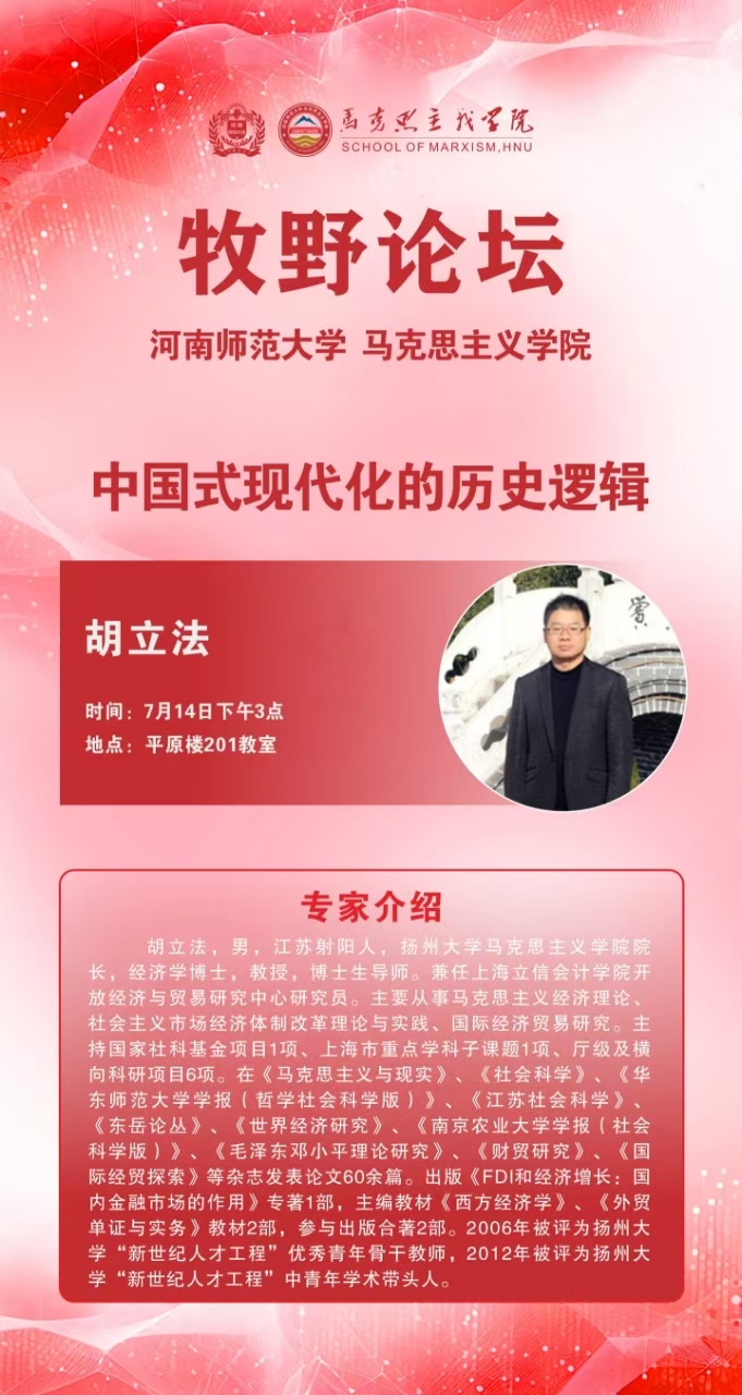 马克思主义牧野论坛 扬州大学胡立法教授讲学通知